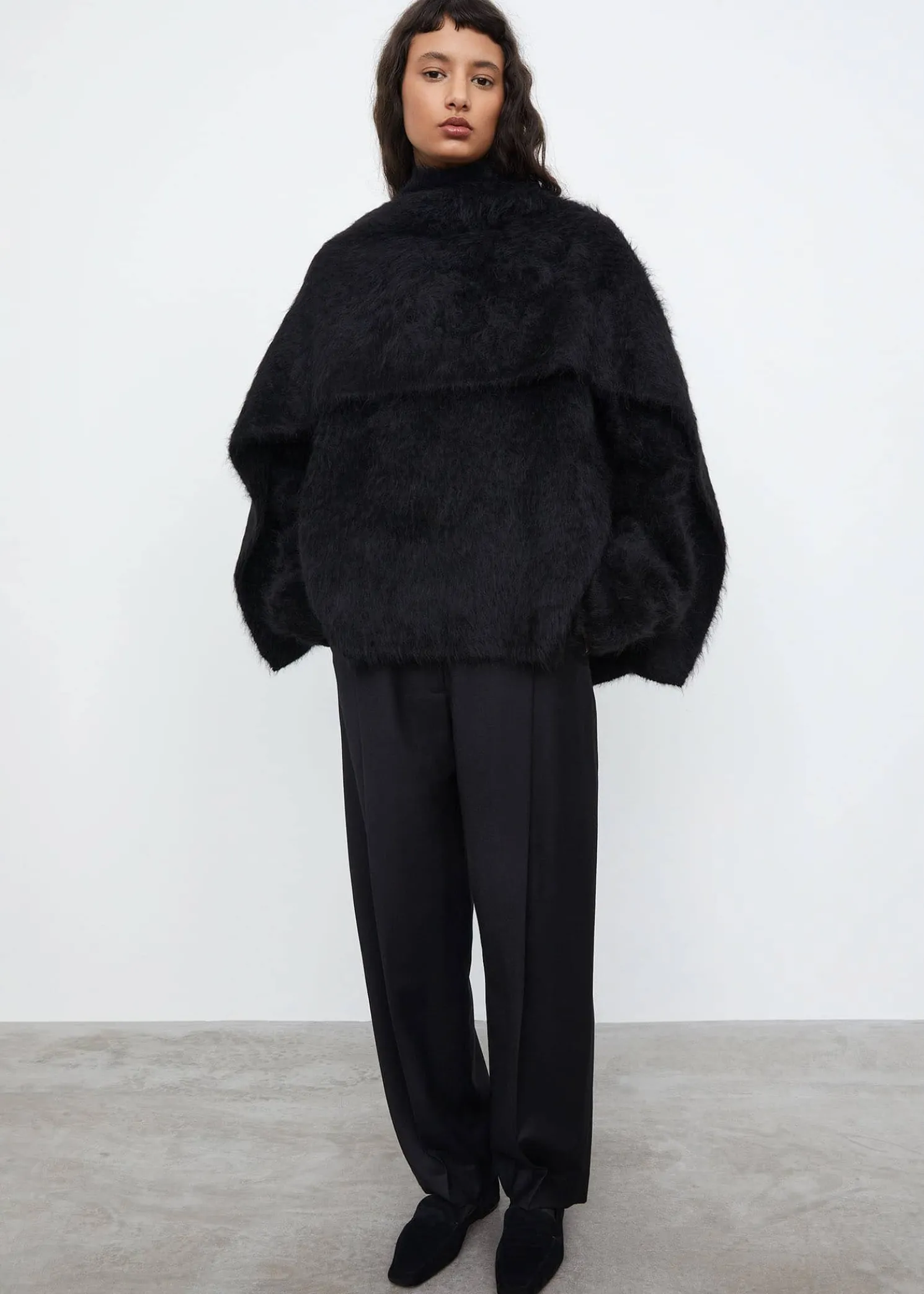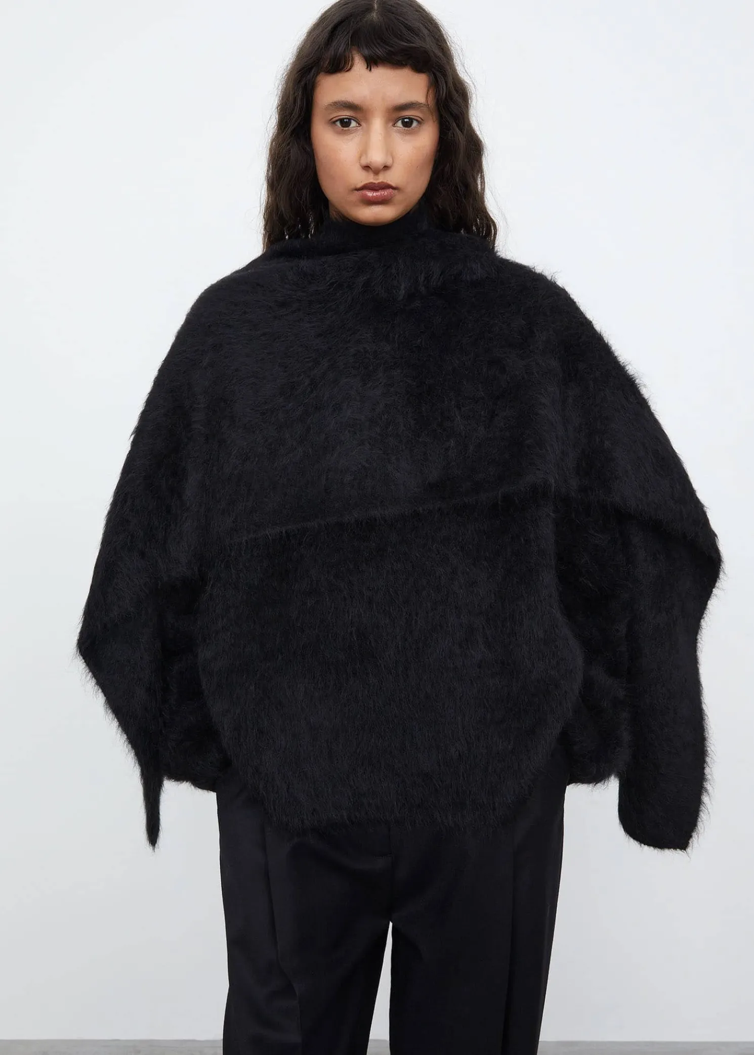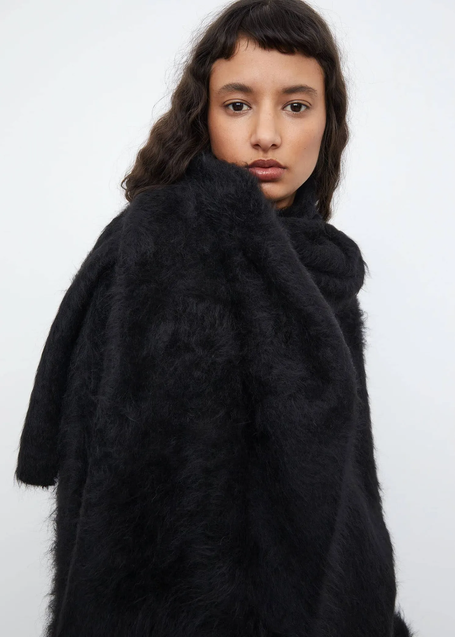 TOTEME winter scarf in a hairy alpaca knit fabric. It’s rectangular in shape with a super soft finish and measures 160x45cm. Coordinate with Boxy alpaca knit in the same fabric this winter.