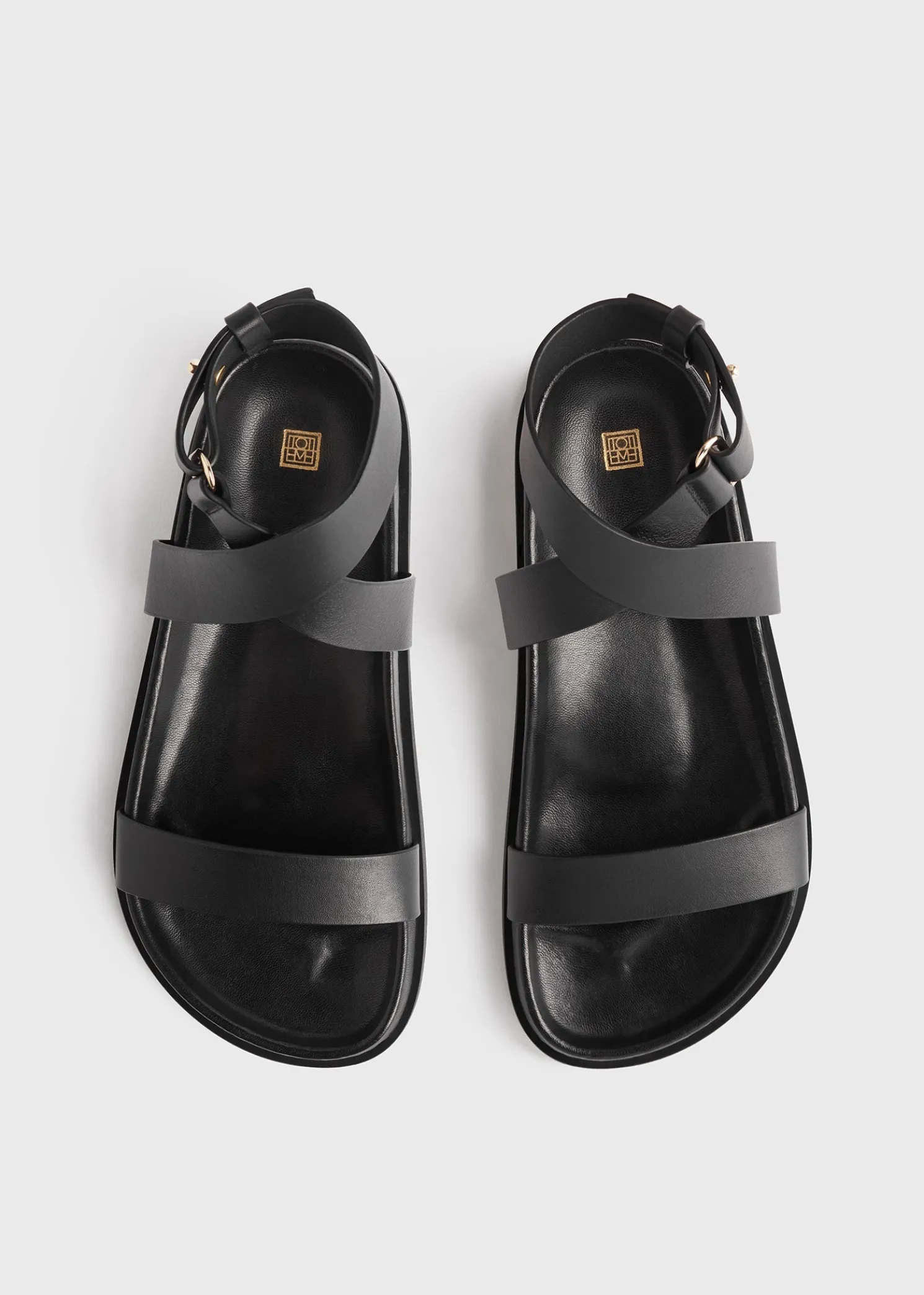 A new take on TOTEME’s chunky sandals, crafted in Italy from smooth leather with a foot-cradling sole and wraparound ankle straps that fasten with gold-tone press studs. Wear them throughout the summer with shorts and skirts.