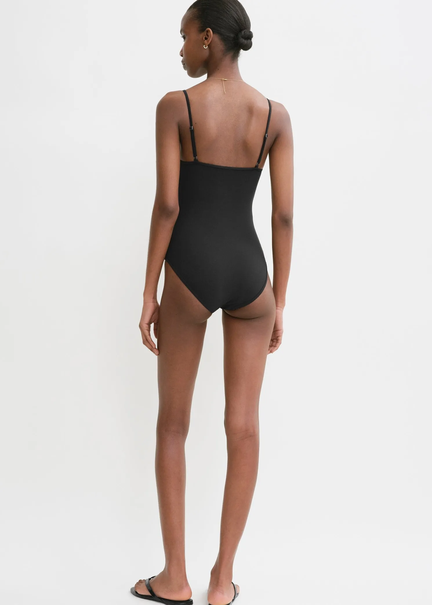 nTOTEME swimsuit with alluring half cups that are underwired for support. It has adjustable straps with silver-tone metal sliders and is fully lined in the same material. Complete an elegant beachside look with a sarong.