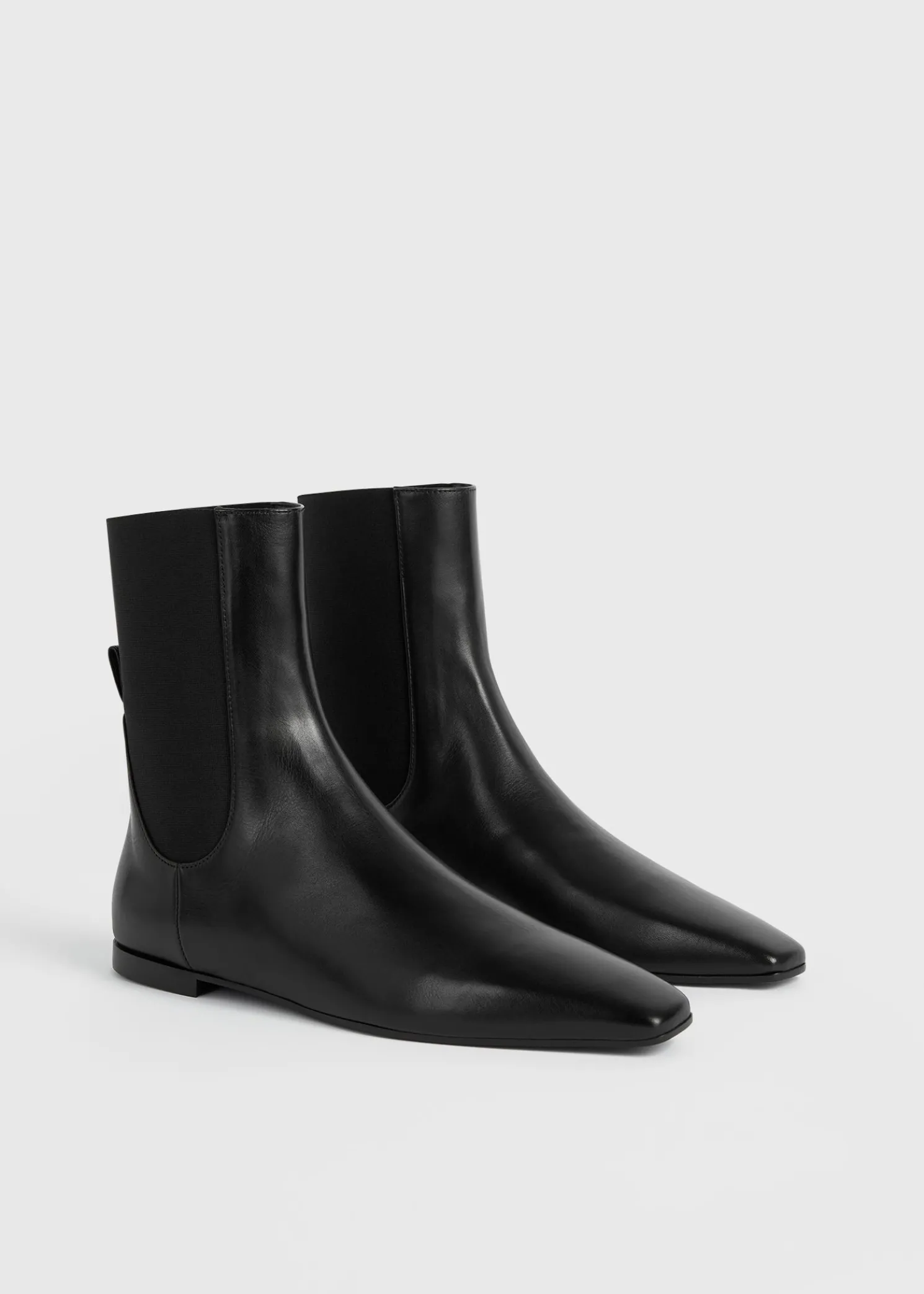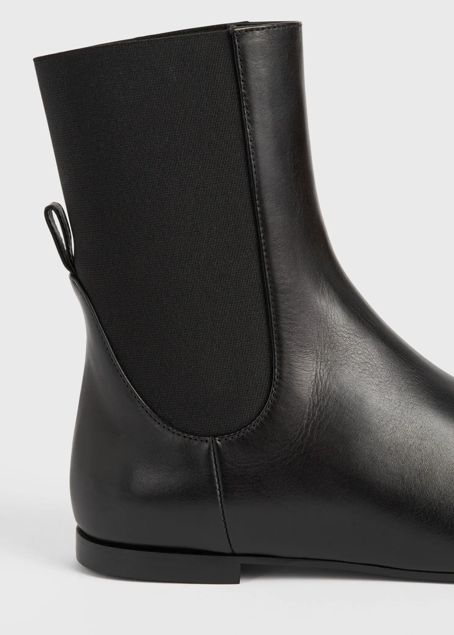 TOTEME Chelsea boots contoured with a high-top, elongated silhouette inspired by our signature Mid heel boots. They are made in Spain from soft Nappa leather with elasticated side panels for easy wearing. Let them peep below cropped trousers and skirts.