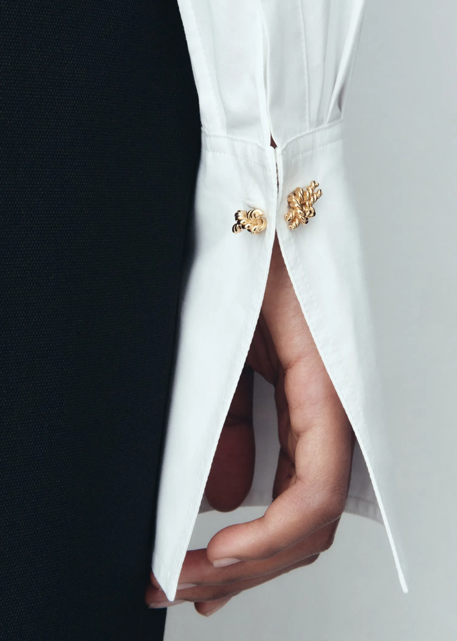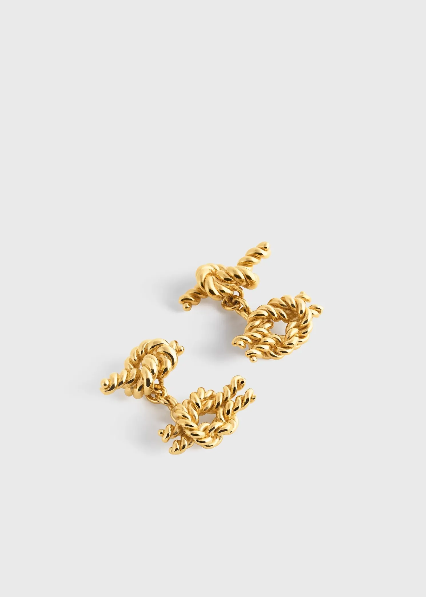 First spotted in our debut runway show for FW24, these TOTEME cufflinks have an elegant drop shape inspired by knotted ropes. They are crafted in Italy from brass plated in yellow gold and fasten with a subtle T-bar mechanism.