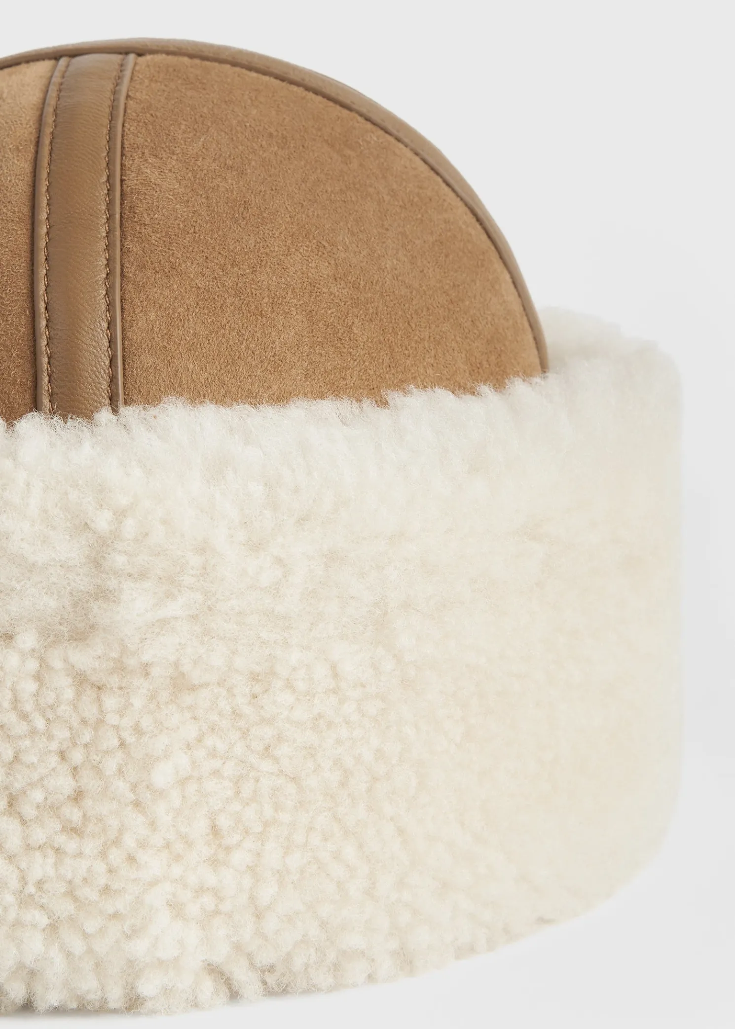 Our distinctive TOTEME winter hat is reworked in a warm biscuit hue this season. It is crafted from warm shaved shearling with a stand-up crown and a wide fold-up edge. Complete a coordinated look with the matching jacket.