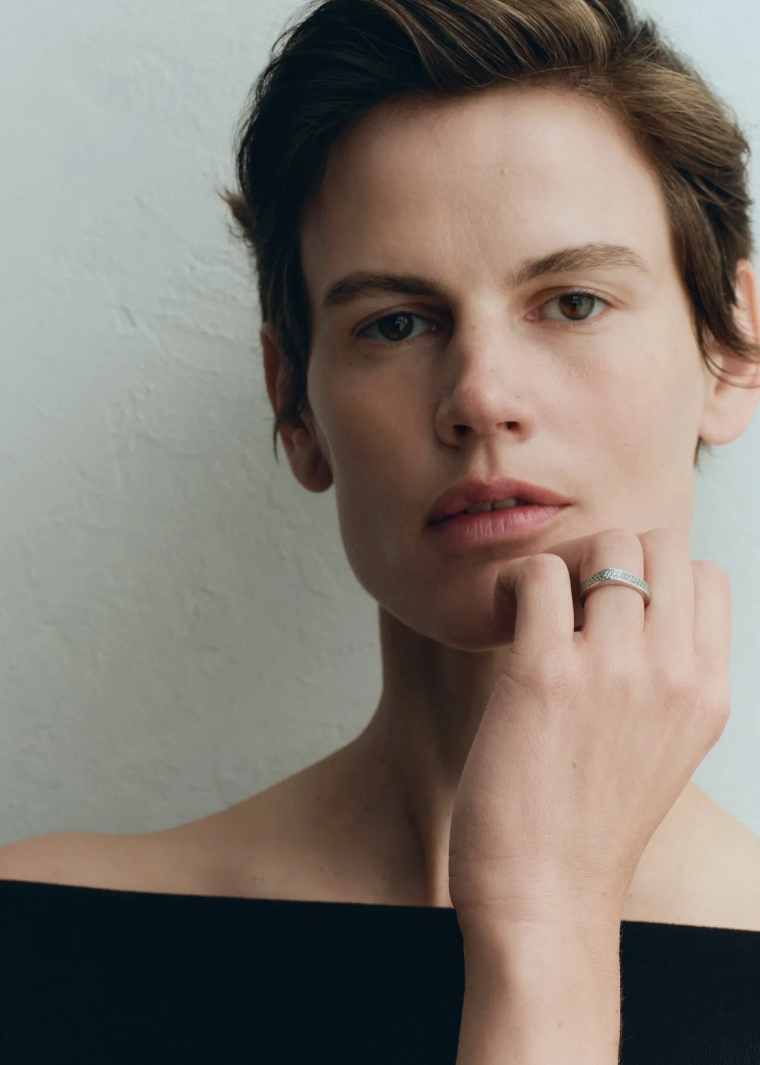 An elevated iteration from our signature jewelry collection, this TOTEME ring is pavé-set with 138 zircon stones for sparkling appeal. It is meticulously crafted in Italy from rhodium-plated brass with a strong silhouette that varies in thickness along the circumference.