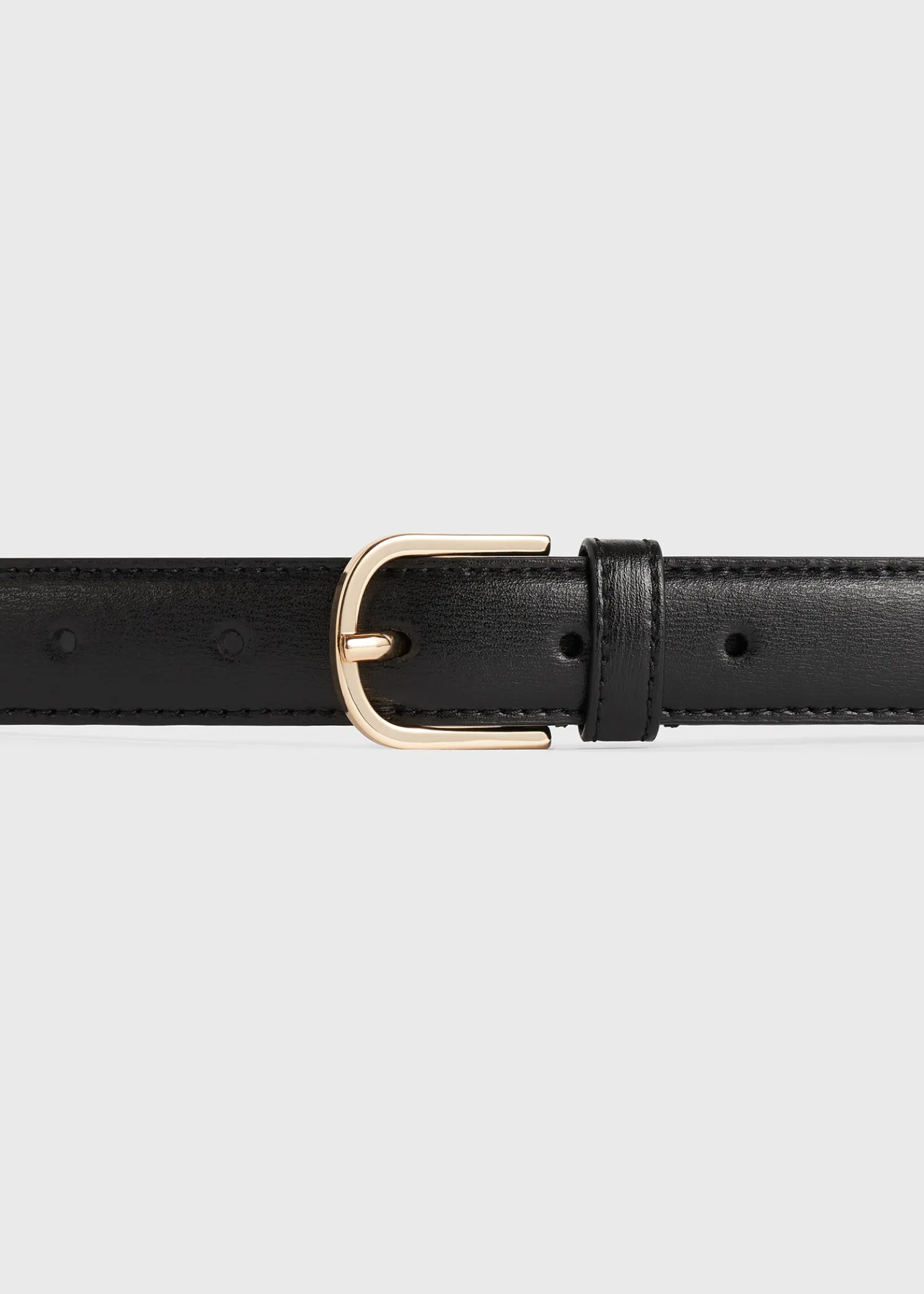 nTOTEME’s distinctive belt is shaped to a slim silhouette to fit smaller belt loops and fastens with a rounded buckle in gold-tone metal for classic appeal. It is made in Italy from lightly textured Palmellata leather and comes in three different lengths. Style it with tailored trousers and jeans.