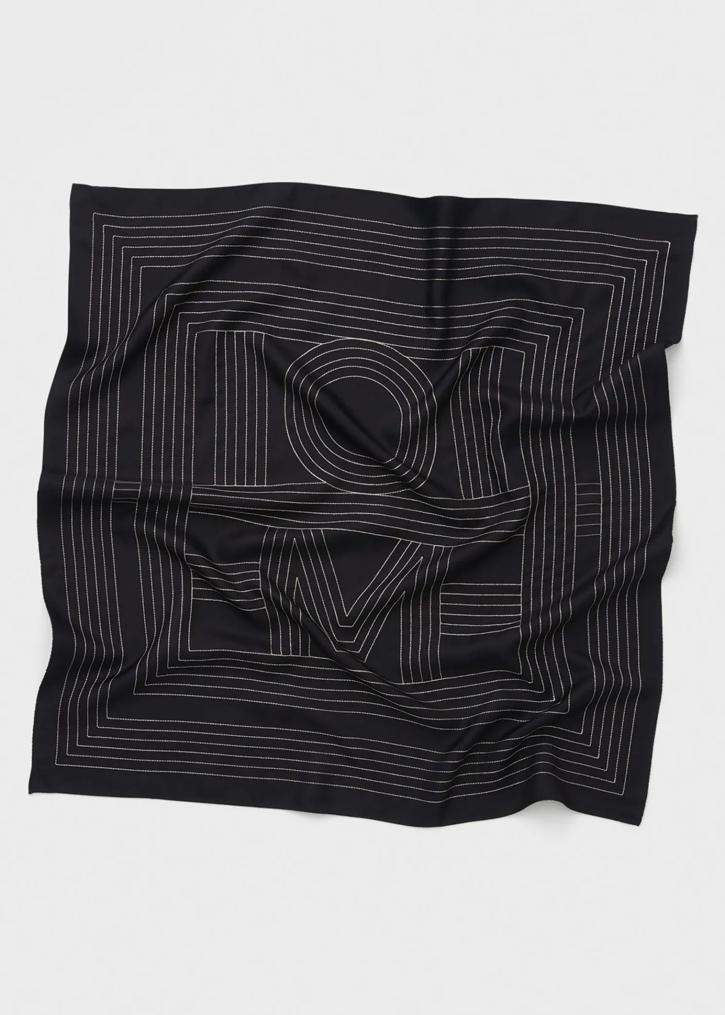 nnLarge TOTEME silk scarf measuring 80x80cm and embroidered with a contrasting crème monogram. Wear it around your neck or over your shoulders.