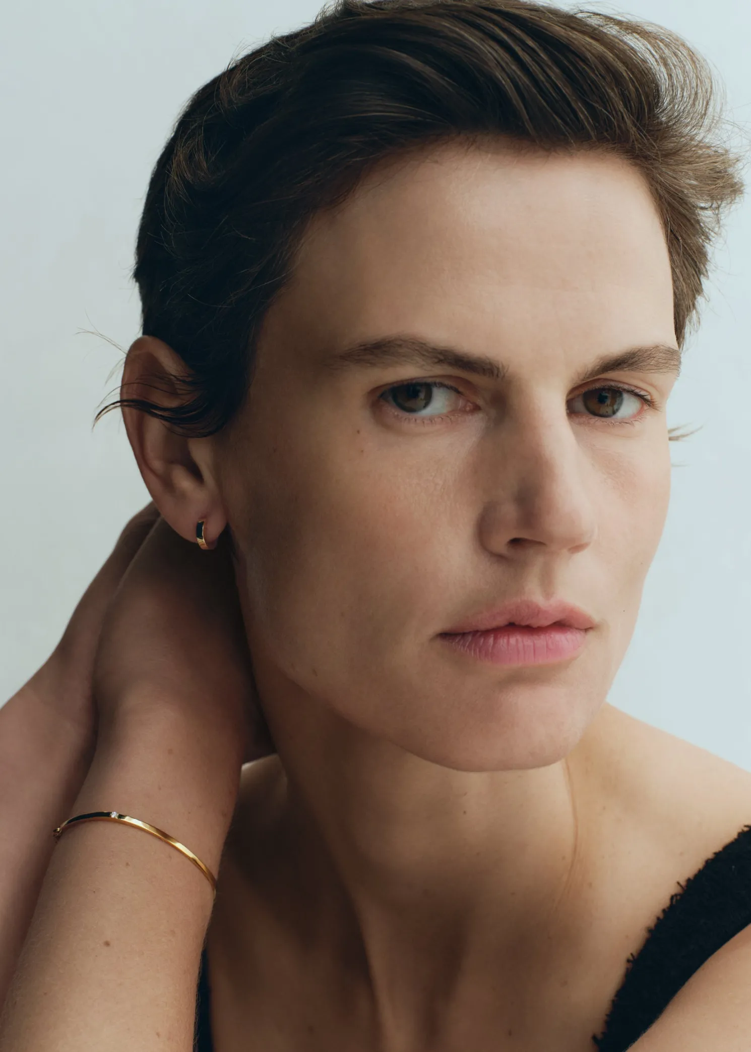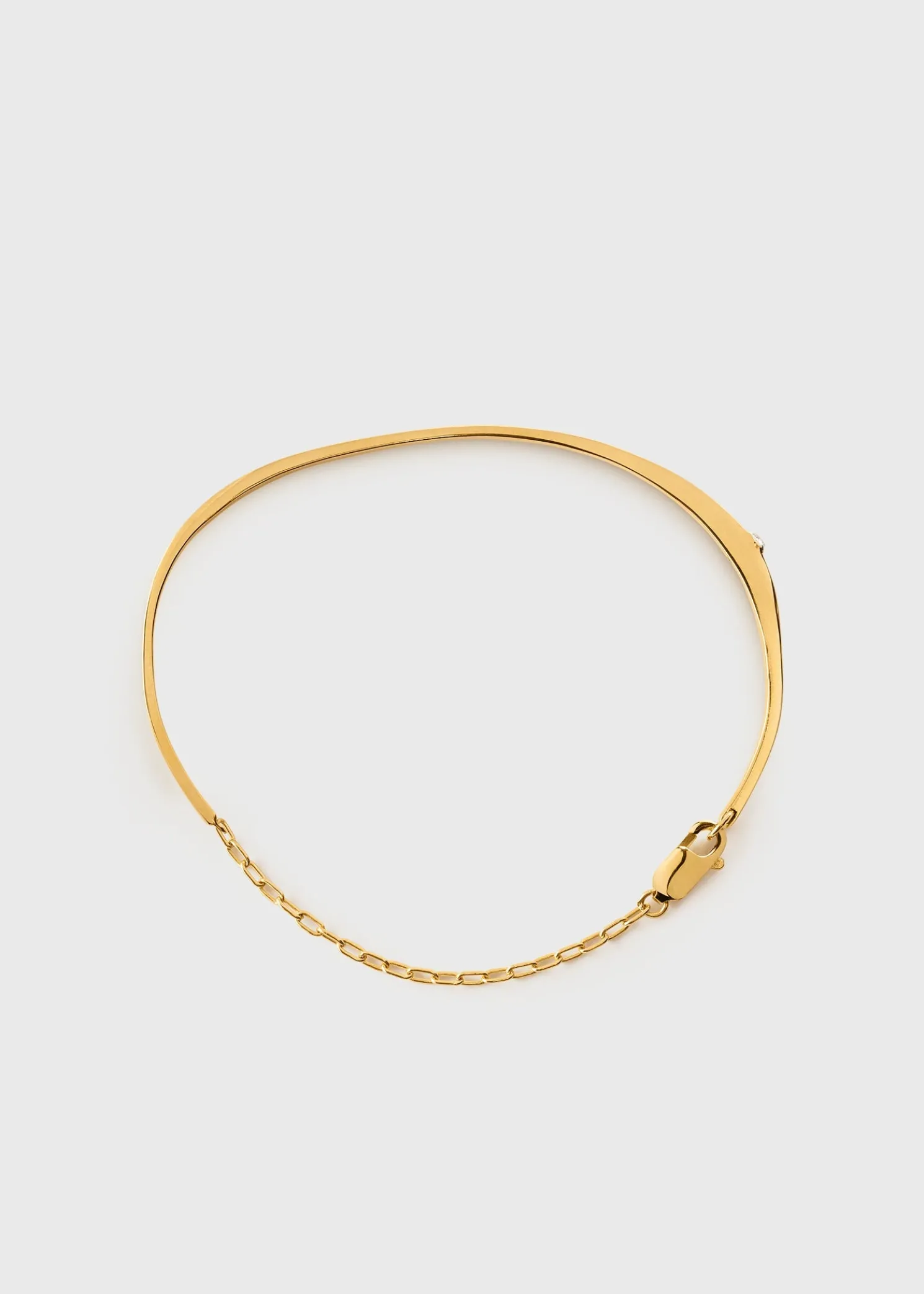TOTEME bracelet featuring an off-center diamond bezel setting that captures our penchant for elegant minimalism. It is crafted in Arezzo, Italy by expert jewelry makers from recycled 18kt yellow gold set with a stone weighing 0.024 carats and a partial chain construction.