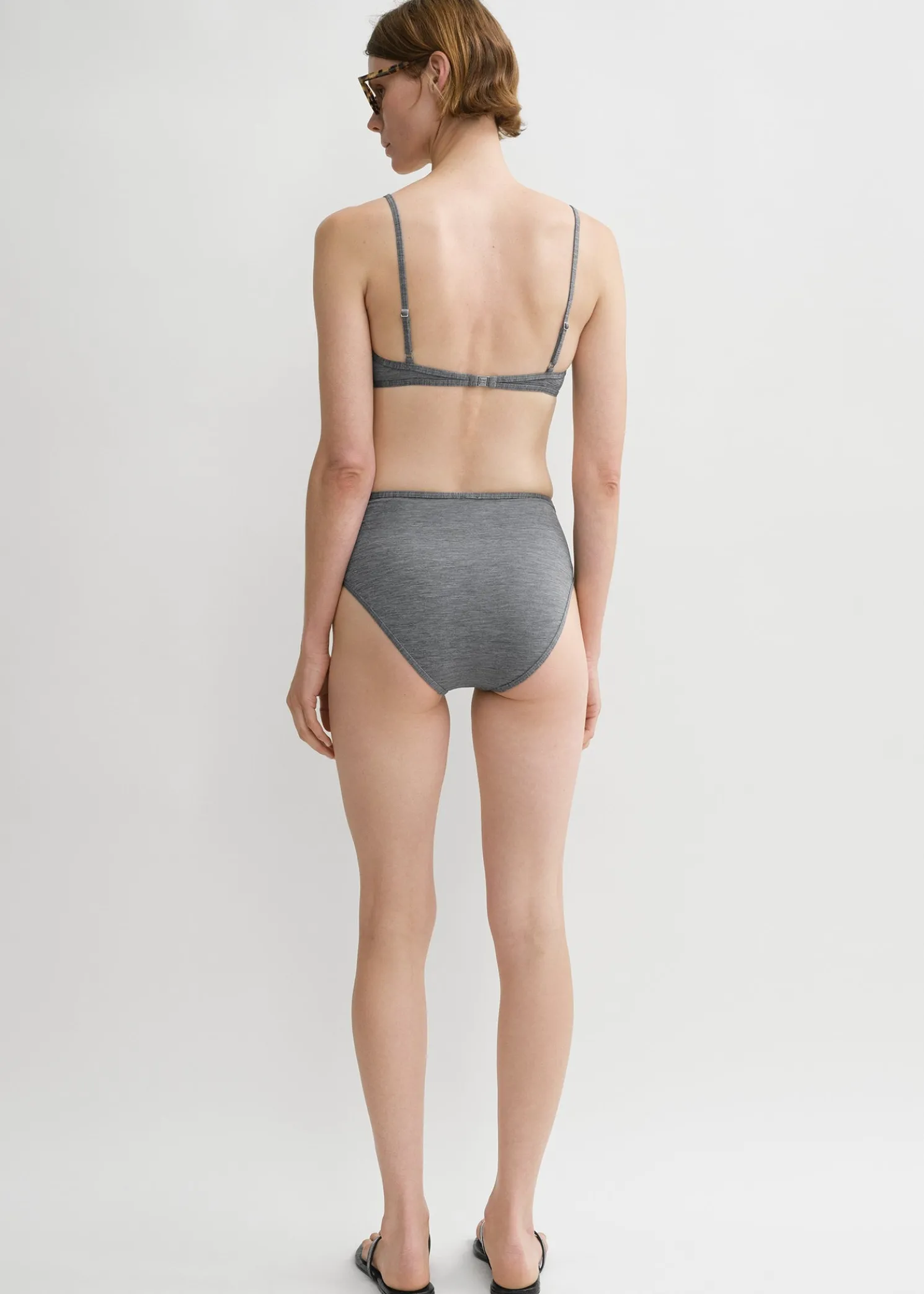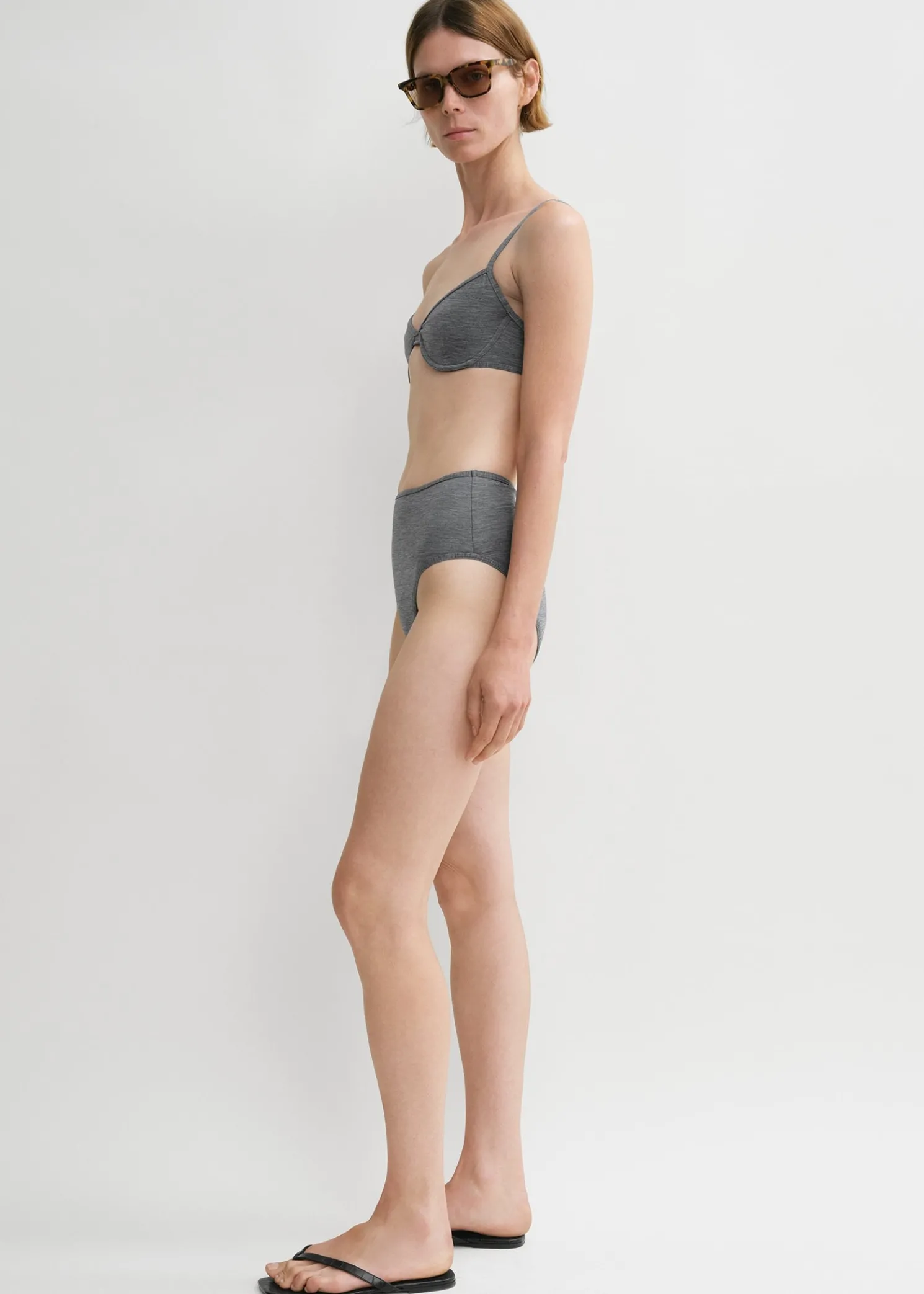 nTOTEME bikini top with an alluring half-cup silhouette that is underwired for support. It is suspended from adjustable straps with silver-tone metal sliders and fastens with a matching clasp, then is fully lined in tonal jersey. Wear it as a set to showcase the mélange effect.
