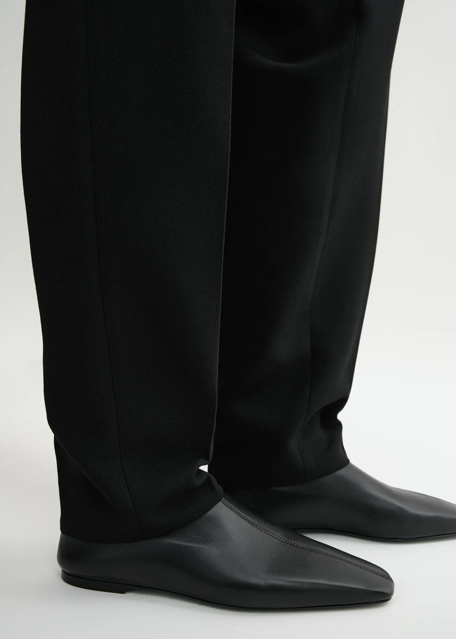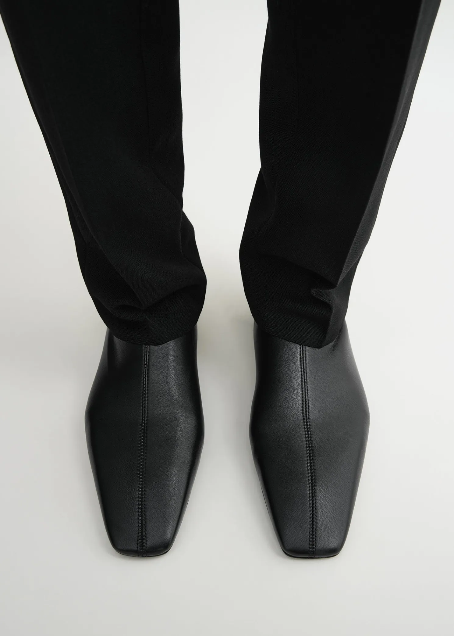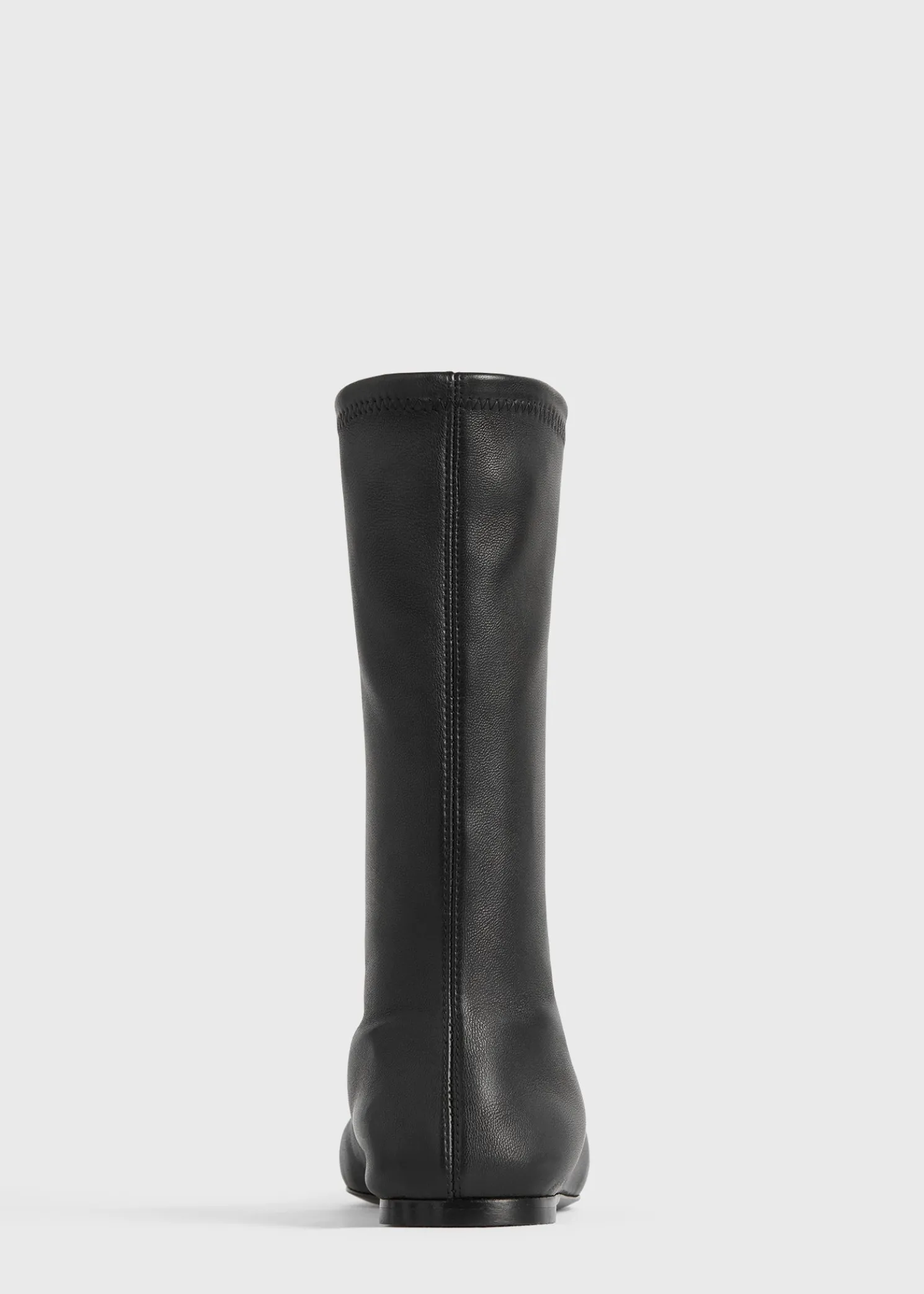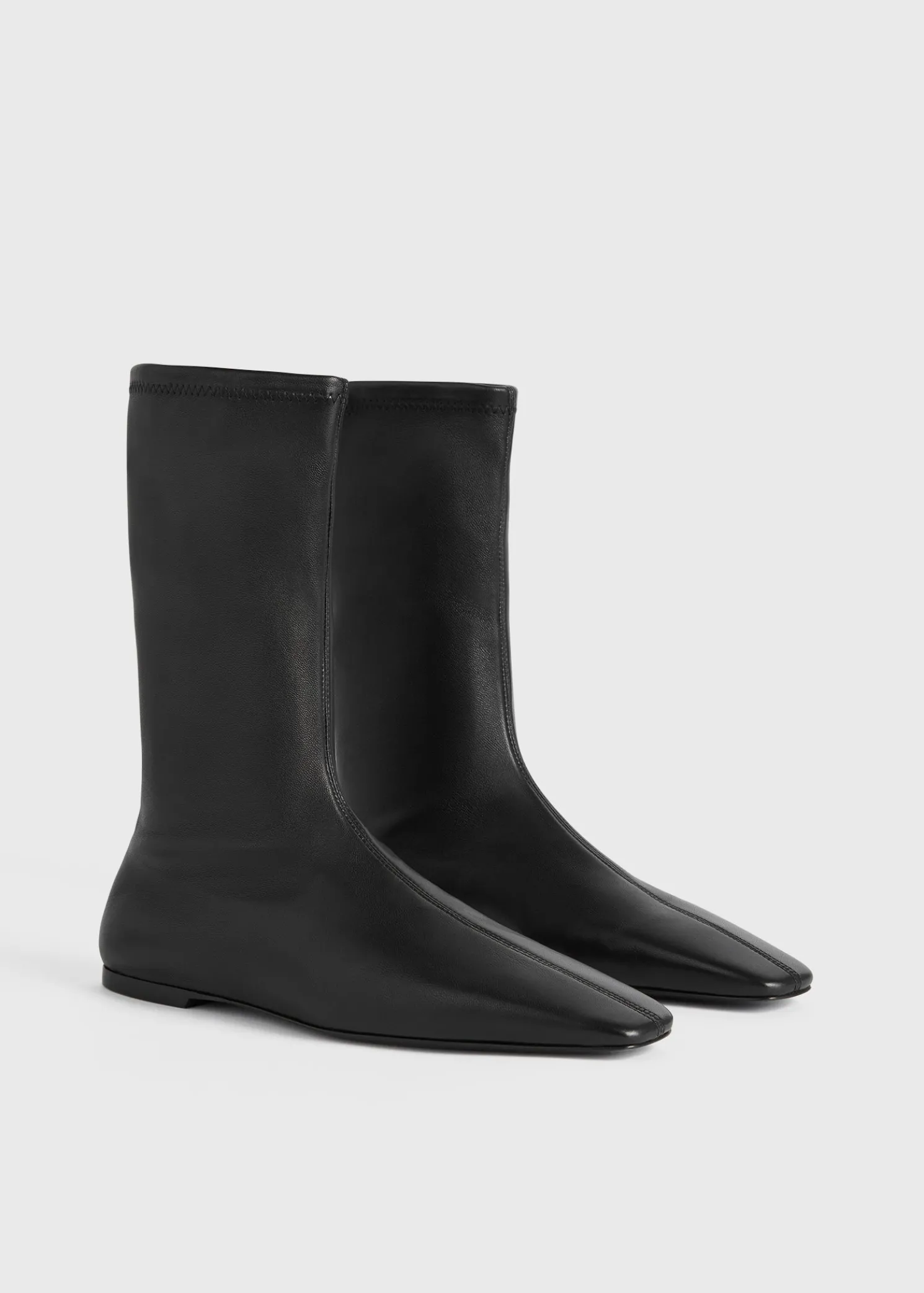 TOTEME boots with an elasticated construction for a foot-hugging, sock-like fit. They are crafted in Italy from supple lamb leather with a neoprene reverse for elasticity and are set on a flat leather sole with an elongated point-toe shape. Wear them throughout the week with trousers.