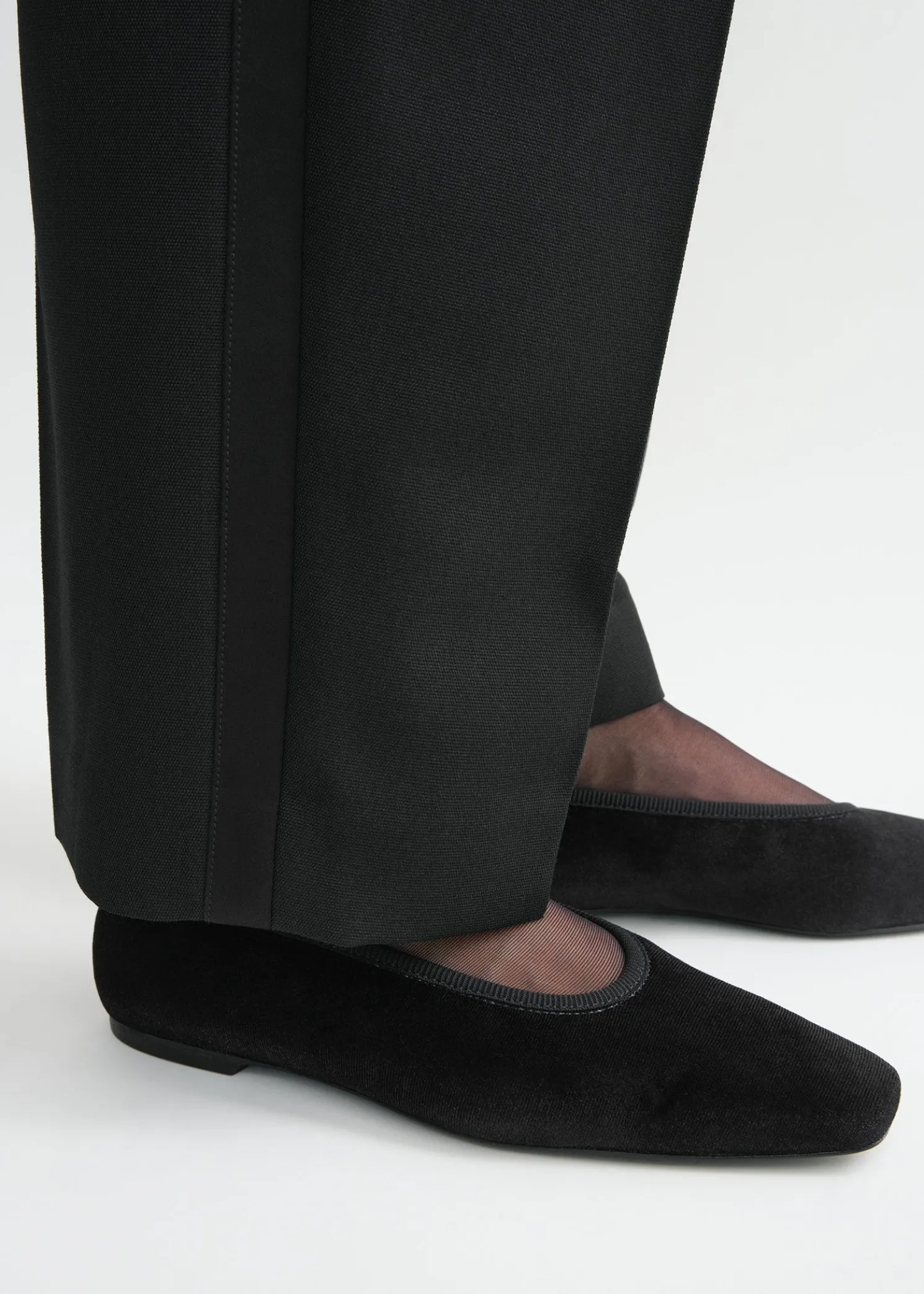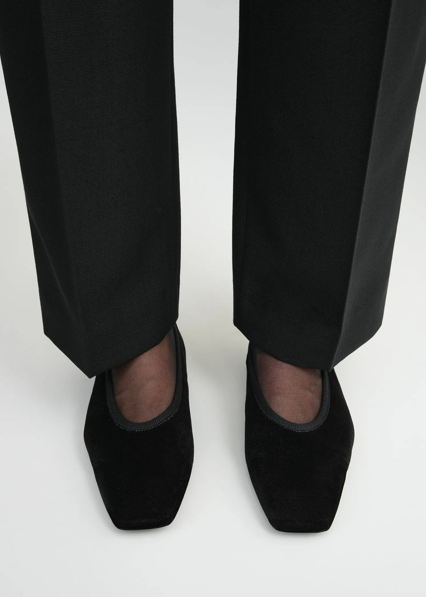 TOTEME ballerinas infused with an effortless, minimalist mood. They are crafted in Spain from velvet and are fully lined in soft leather that molds around the foot as you wear them. Let them peep below tailored trousers.