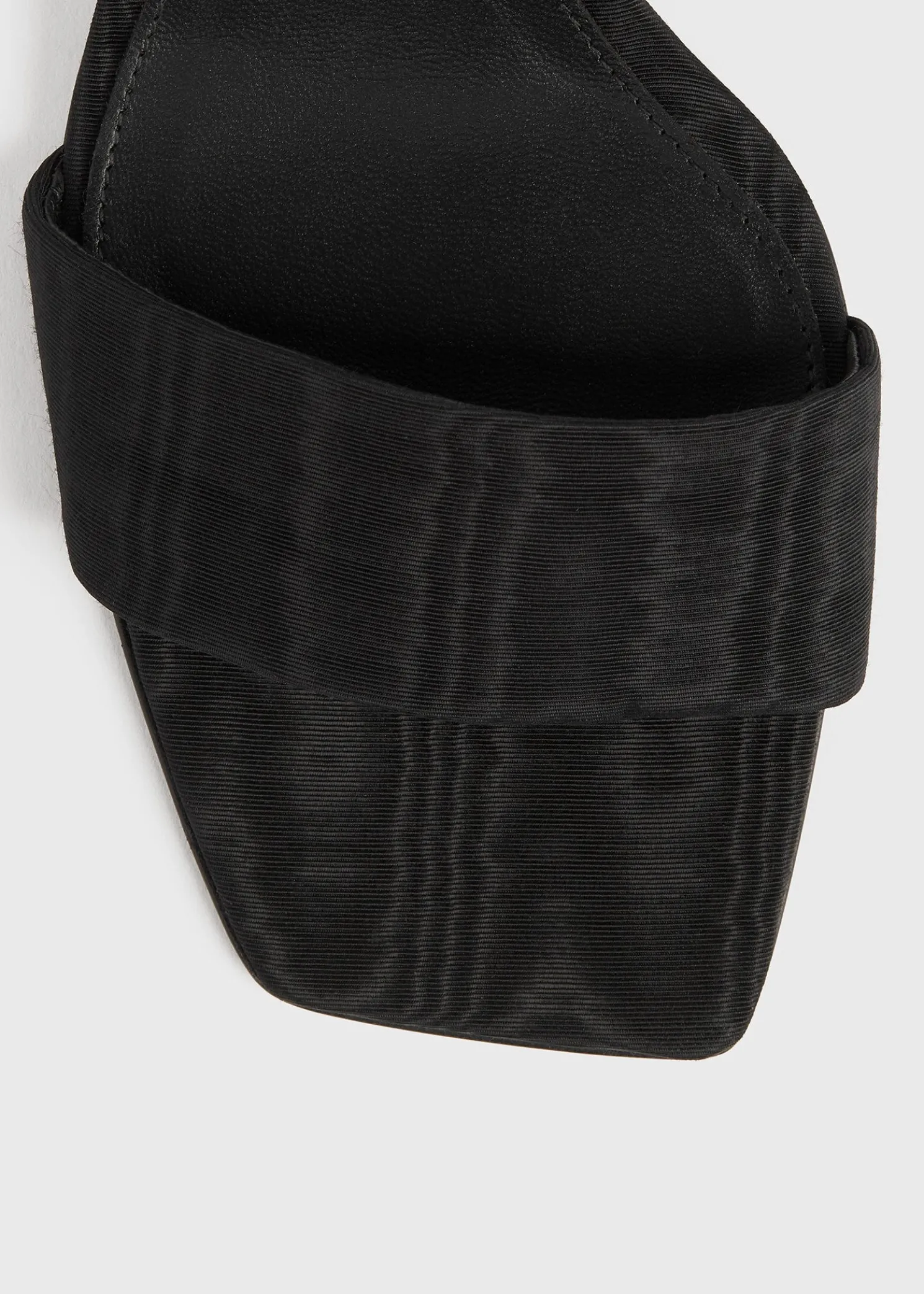 TOTEME mule sandals crafted in Italy from moiré, a fabric with a wavy pattern that seems to move when looked at from different angles. Made in Italy, it has a wide strap concealing an inner thong to support the toes and rests on a slightly slanted heel measuring 55mm. Keep them in focus below cropped trousers.