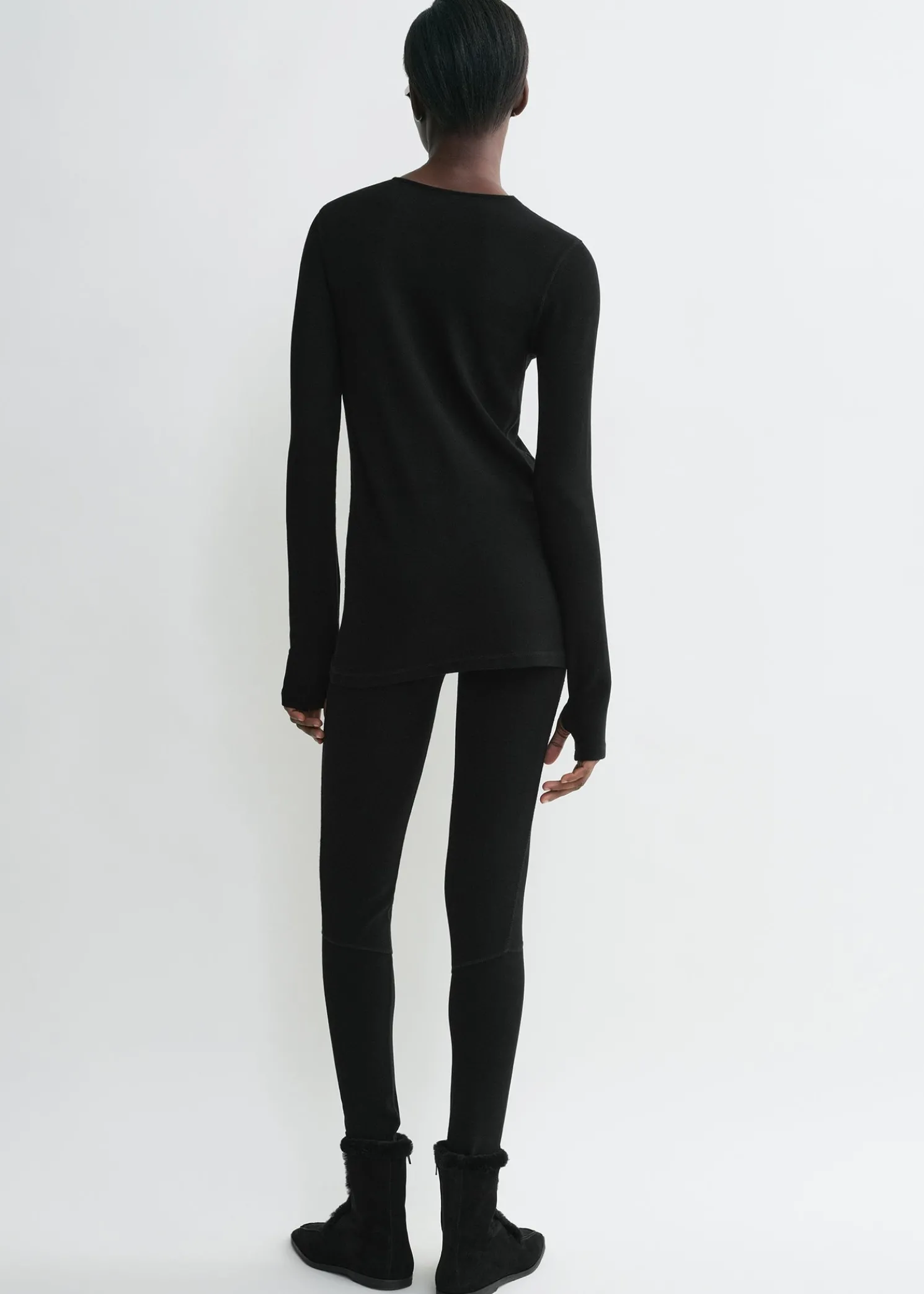 This long-sleeved top can be worn as part of a set underneath winter looks or to lounge indoors. It is knitted from compact, mid-weight jersey featuring a subtle iteration of the TOTEME monogram, then outlined with a slim silhouette and an overlock-stitched neckline. Wear it with the matching leggings as part of an après-ski look.