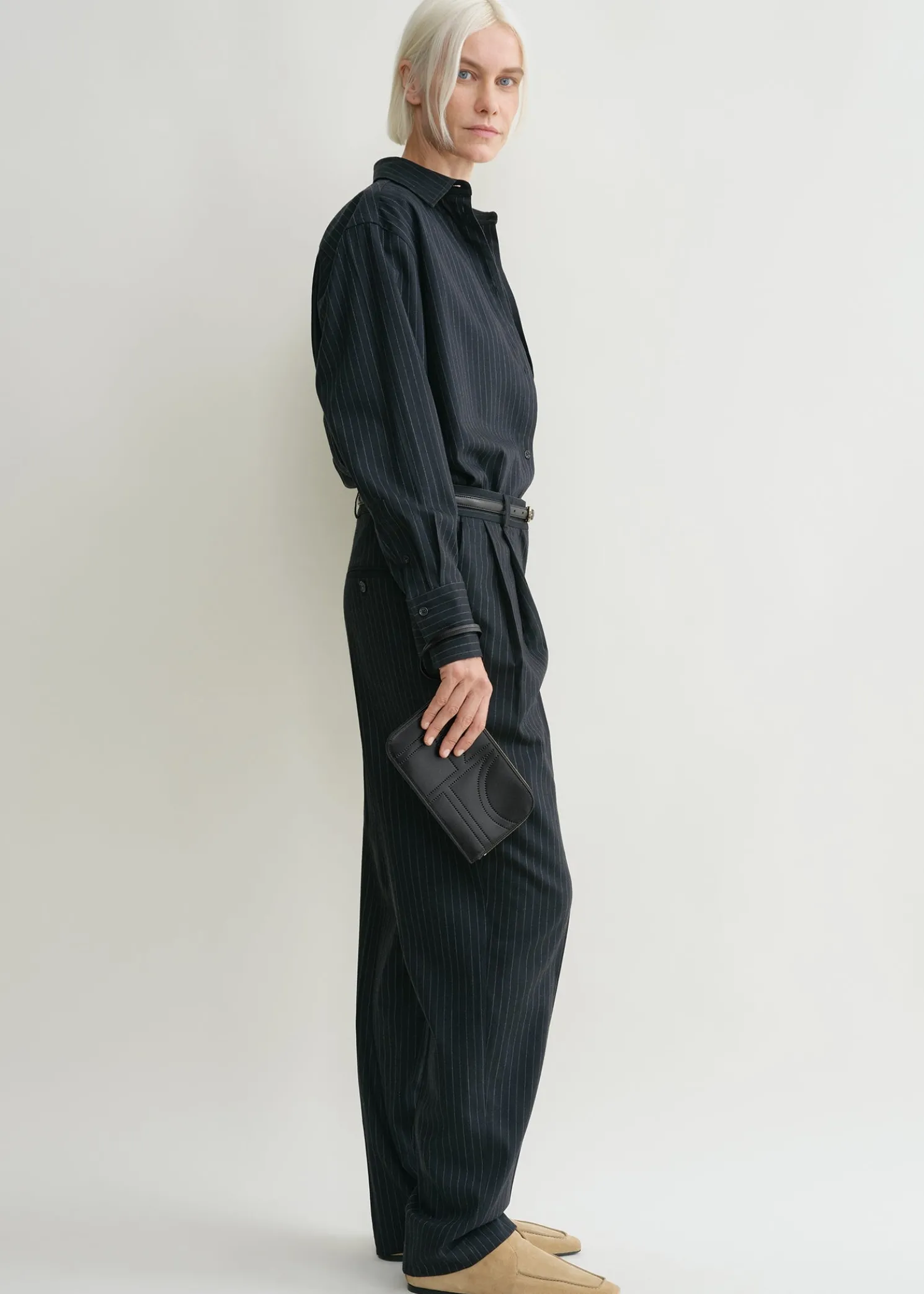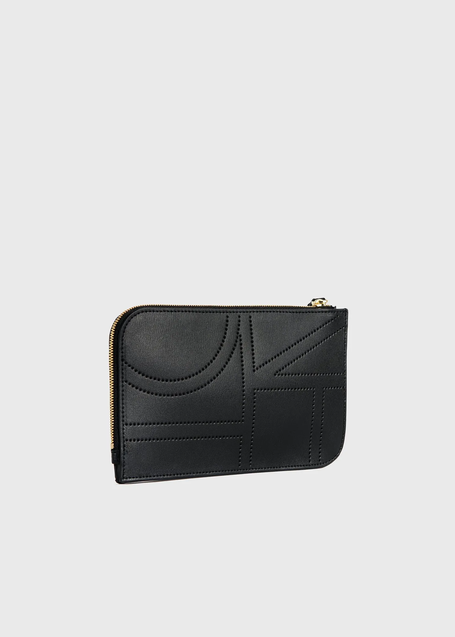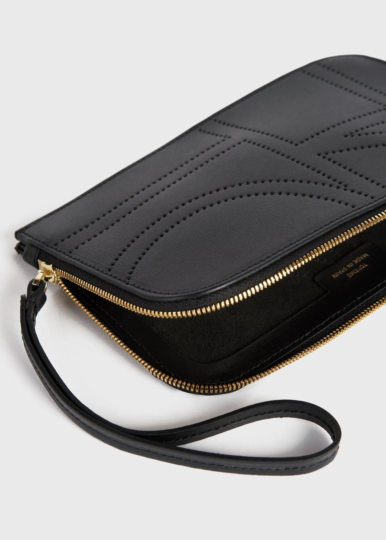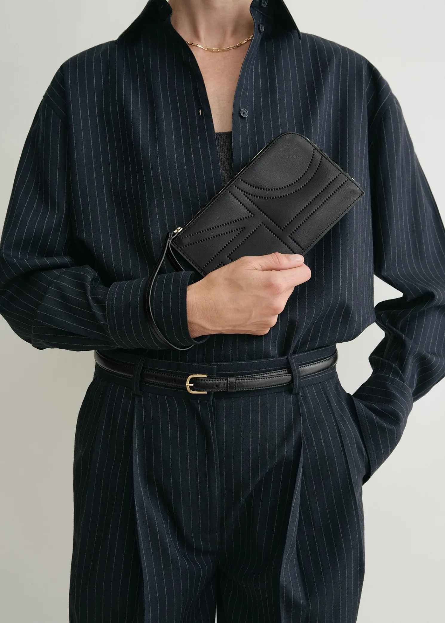 TOTEME pouch that doubles as an everyday purse and evening bag. It’s crafted in Spain from leather perforated with the distinctive monogram and opens with an elegant gold-tone zipper. Let it dangle playfully from the wristlet strap.