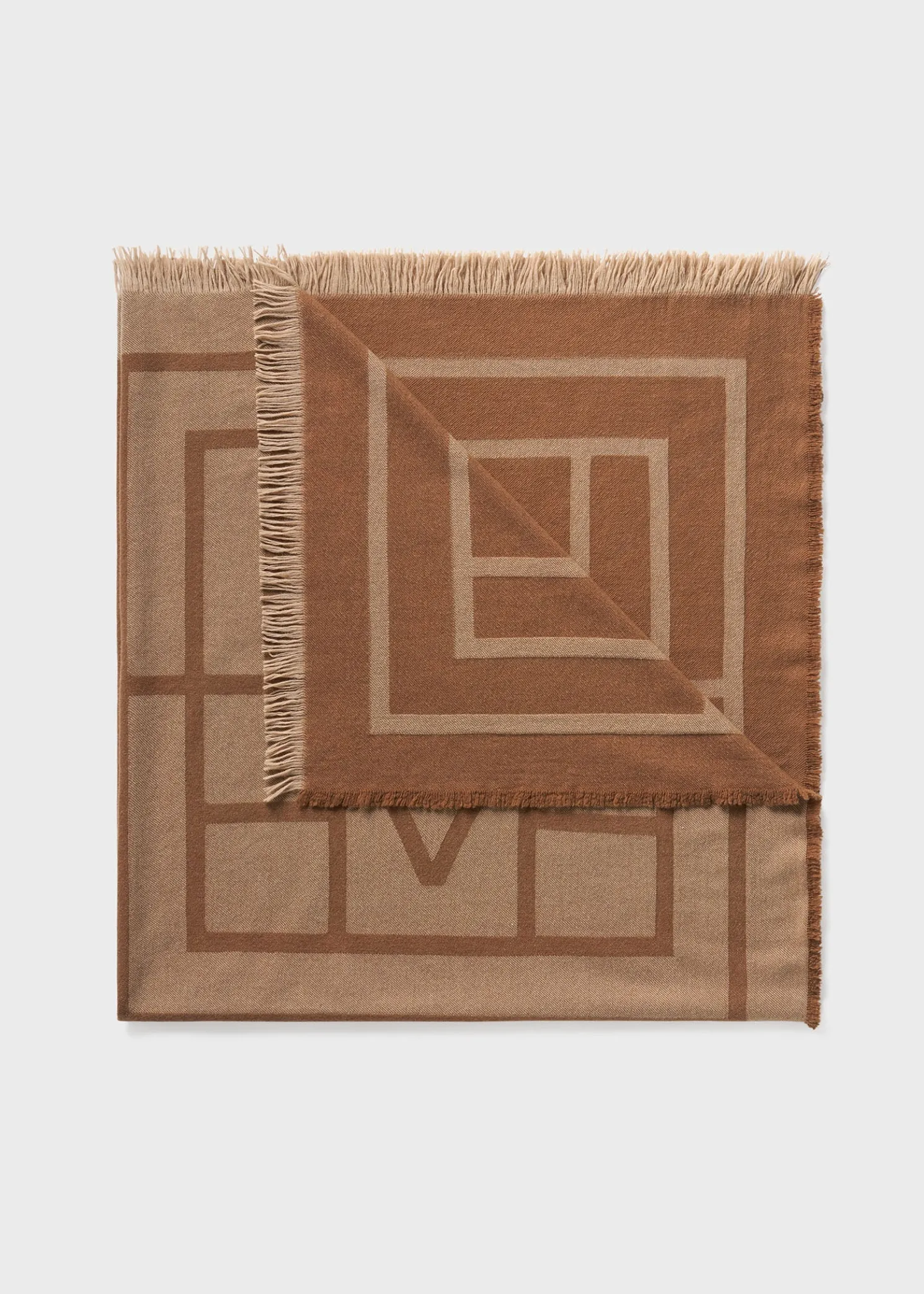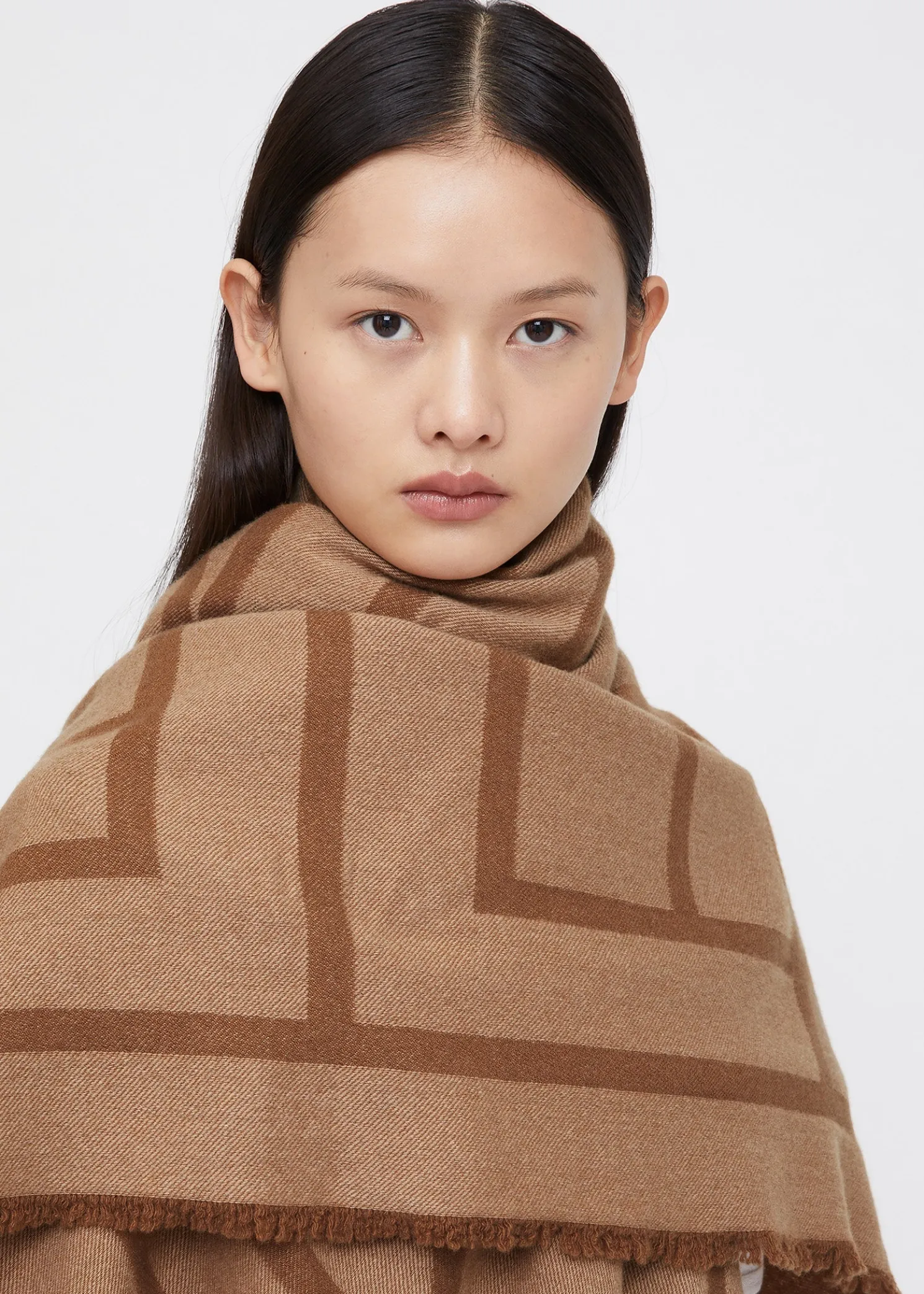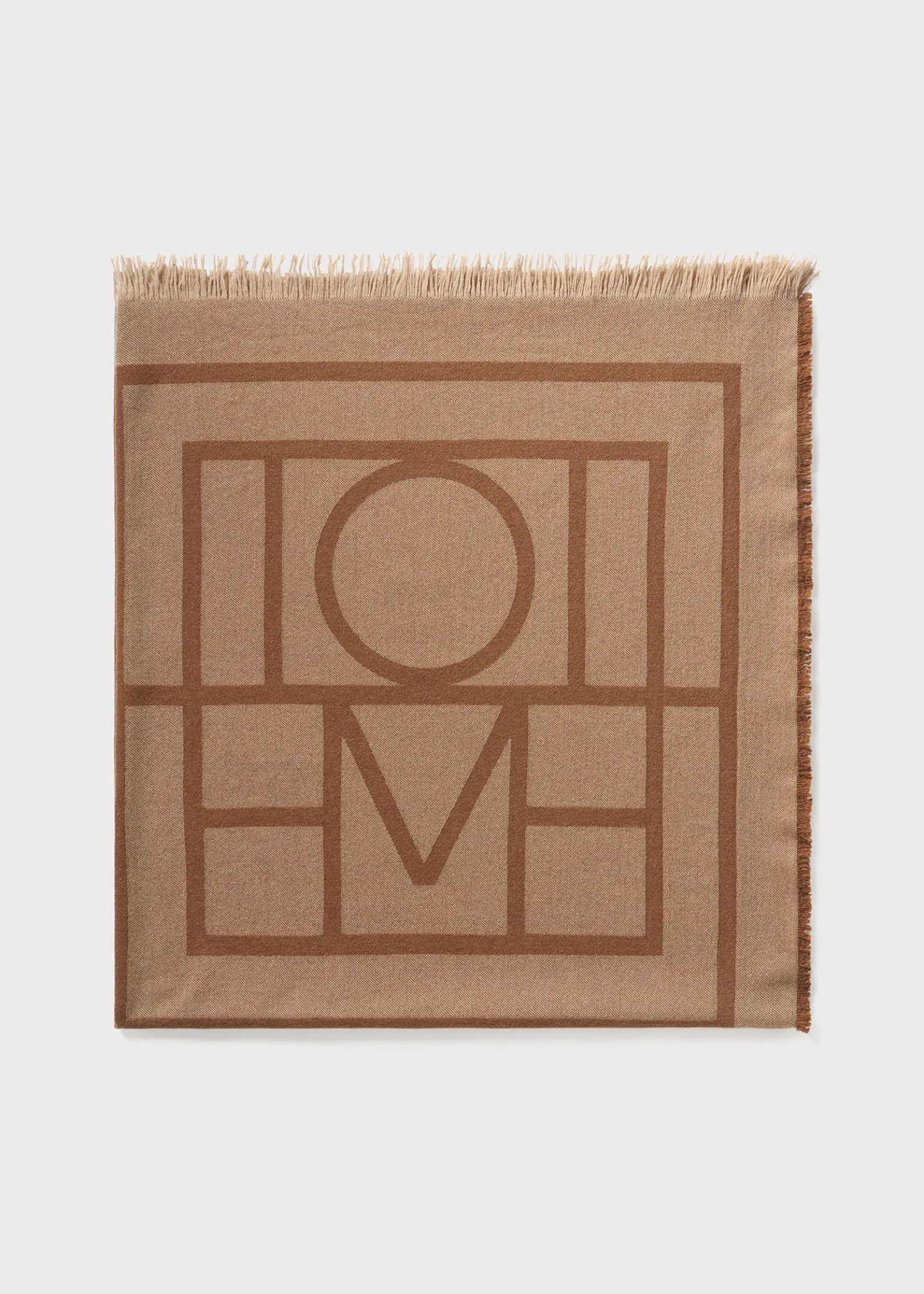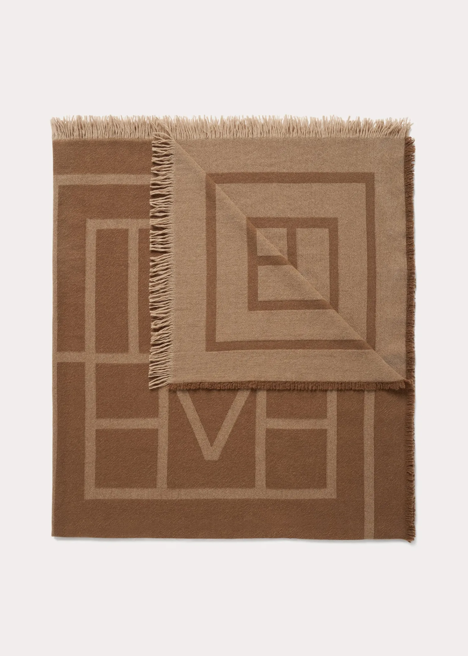 TOTEME blanket scarf woven in Italy from soft wool and cashmere yarns. It has a monogram jacquard, lightly frayed edges, and measures 140x140cm. Wrap it around your coat, wear it over your shoulders, or take it on your next weekend getaway.