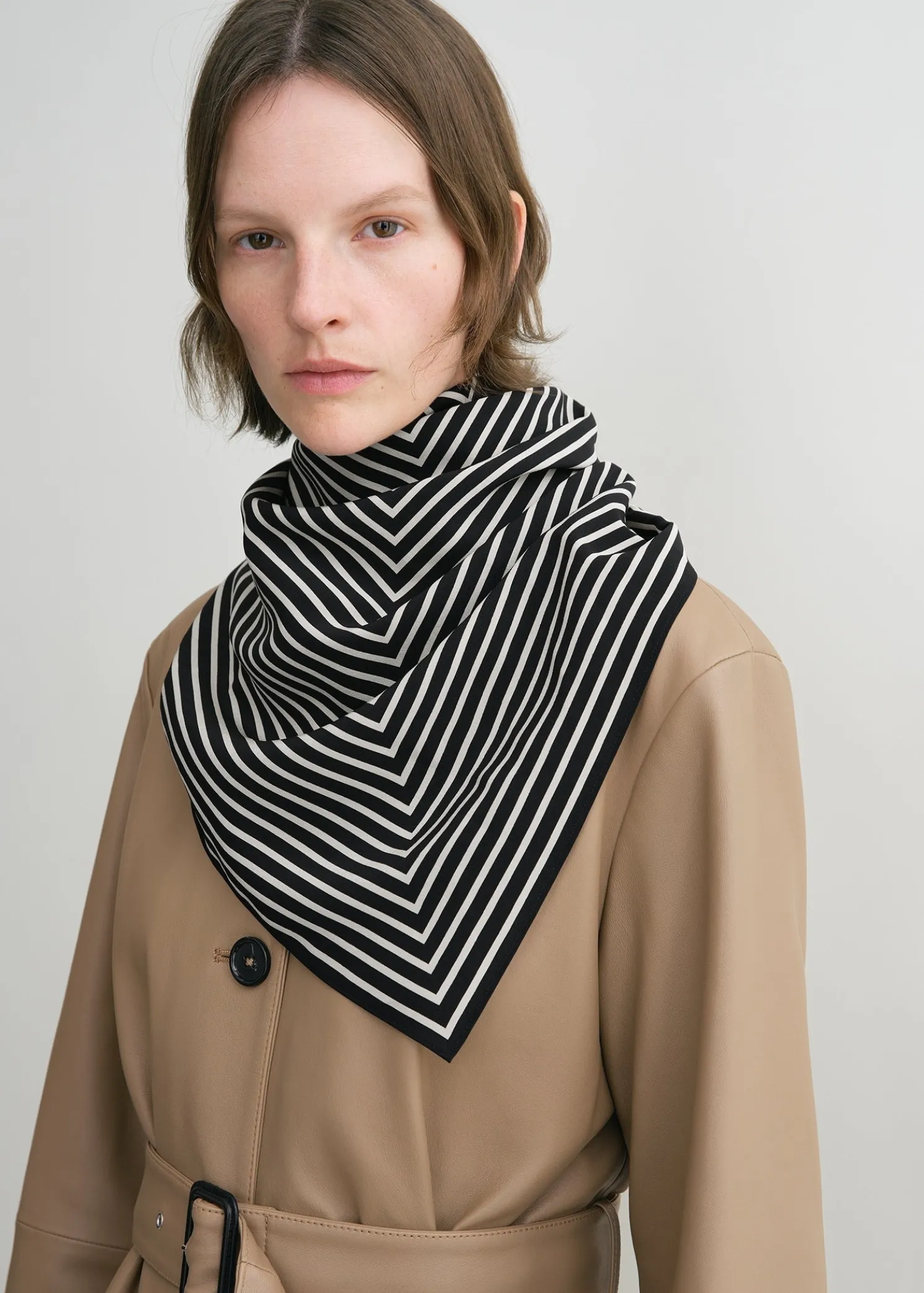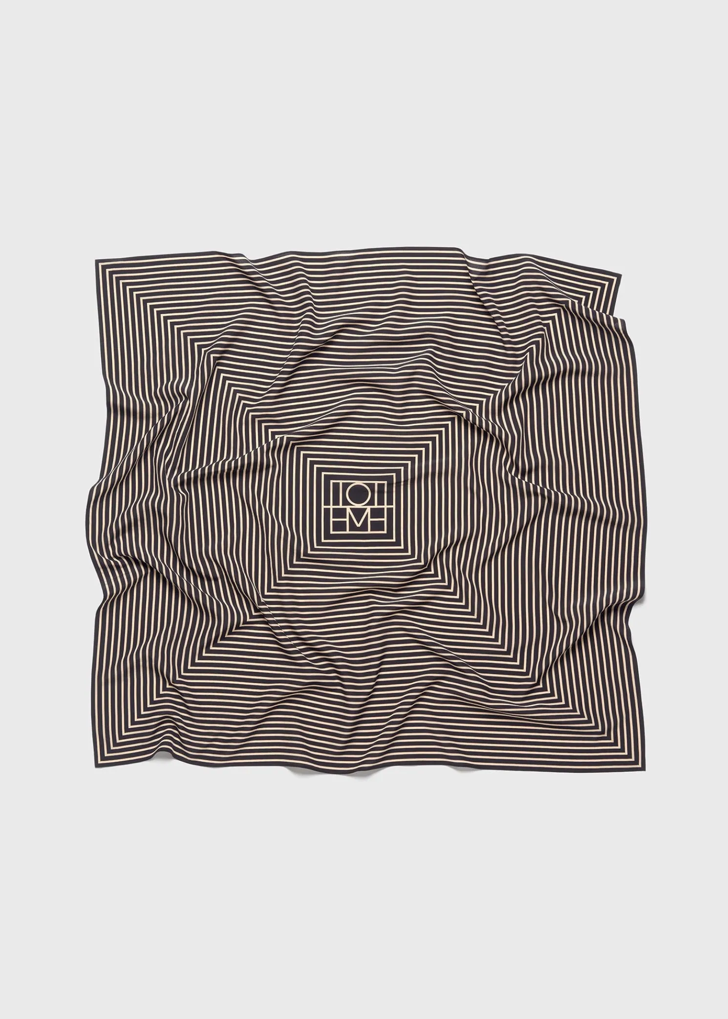 An oversized take on TOTEME’s signature monogram silk scarf. It’s square in shape, has a striped print pattern with a monogram in the middle, and measures 110x110cm. Tie around your neck or wear over your shoulders.