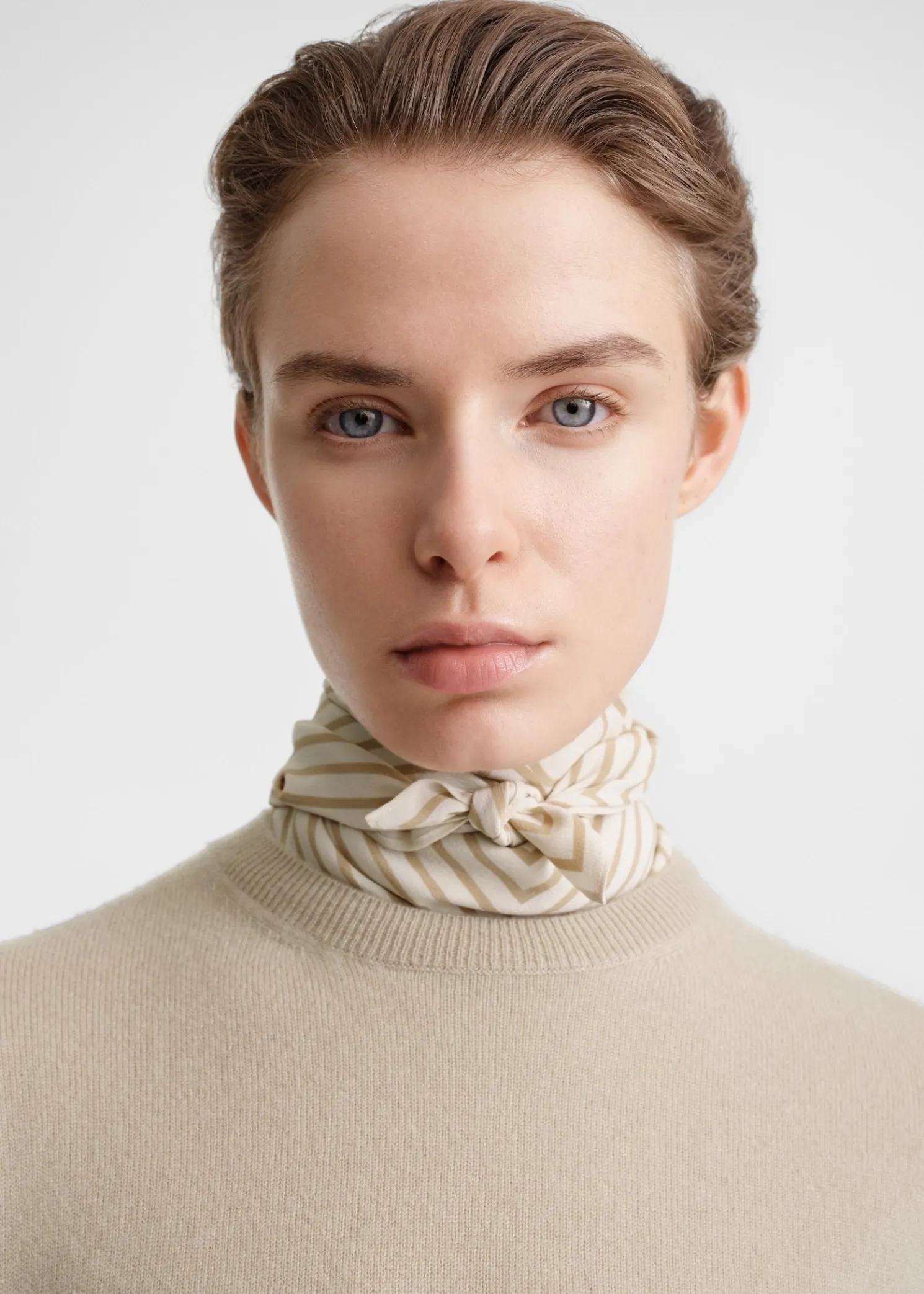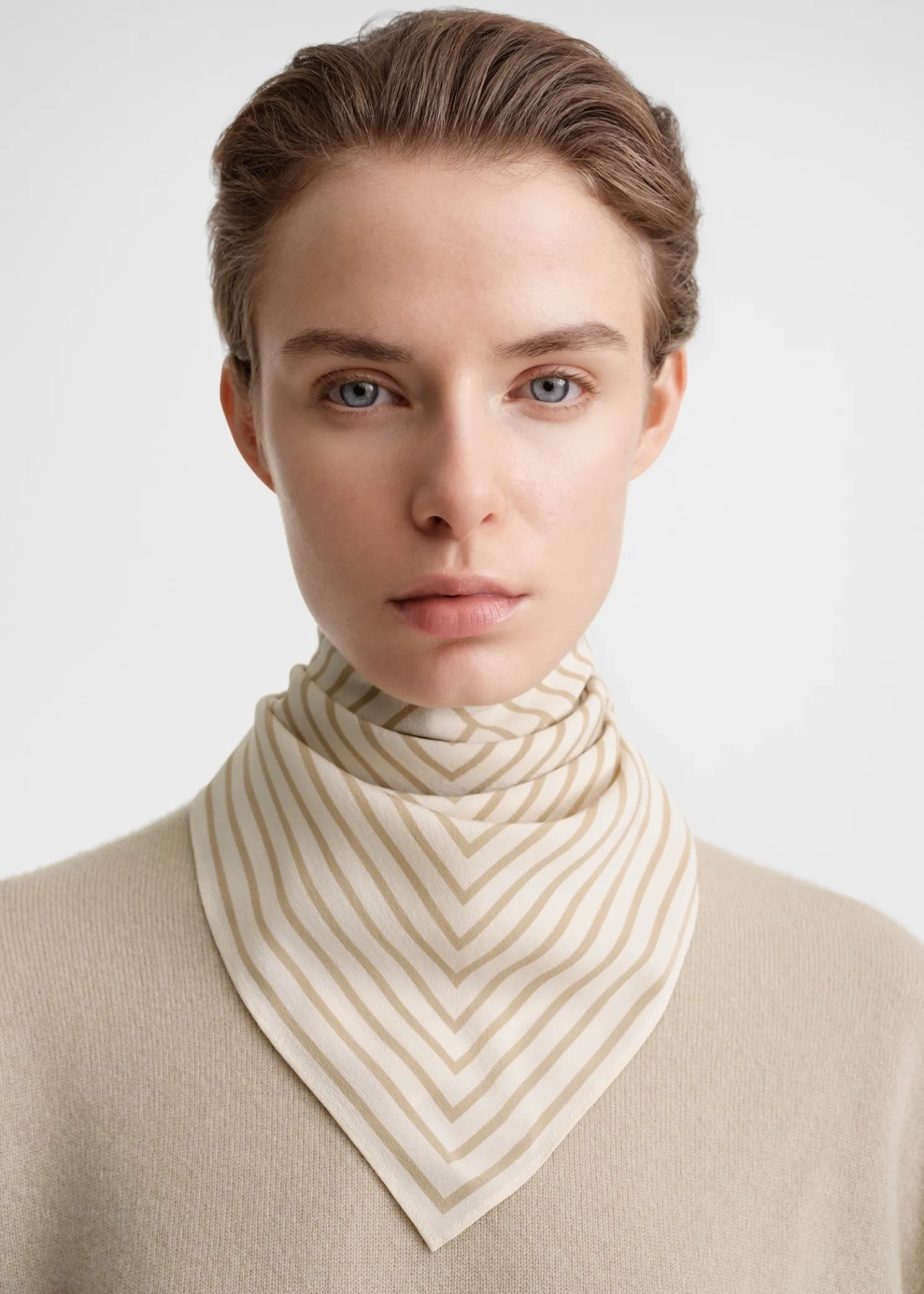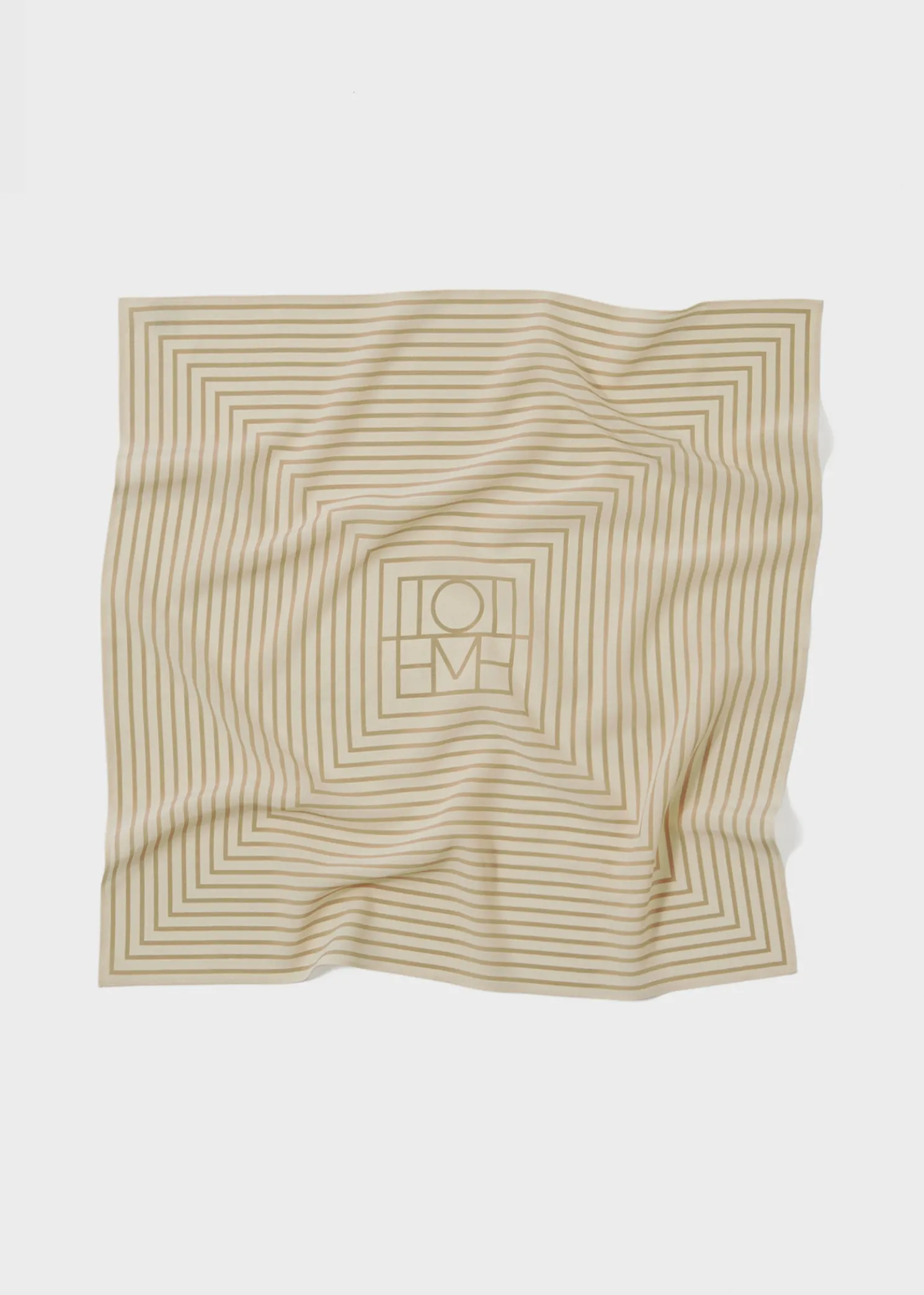 Signature TOTEME scarf woven from featherlight silk yarns. It has a square shape measuring 57x57cm that’s printed with a distinctive monogram in the middle. Wear it around your neck or over your shoulders.