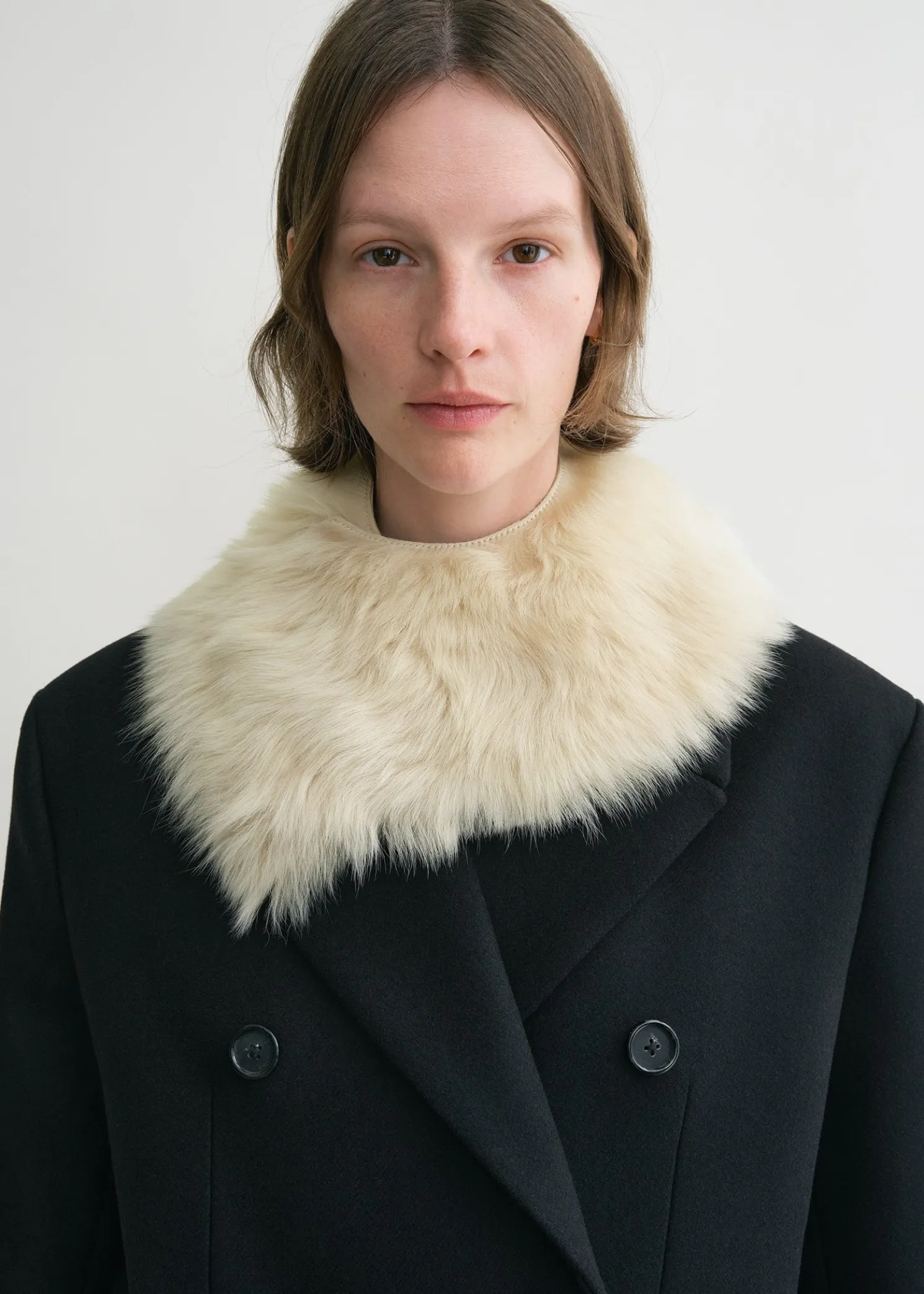 Short TOTEME collar made from long-haired, silky shearling to elevate winter edits. It has two hook-and-eye fastenings for an adjustable fit and has a supple Nappa leather reverse. Use to add texture to a winter look.
