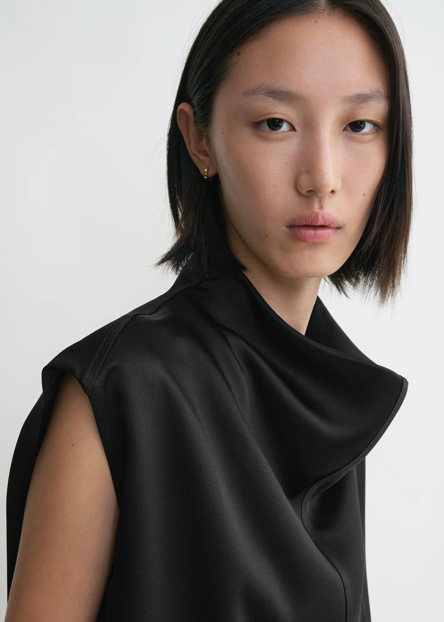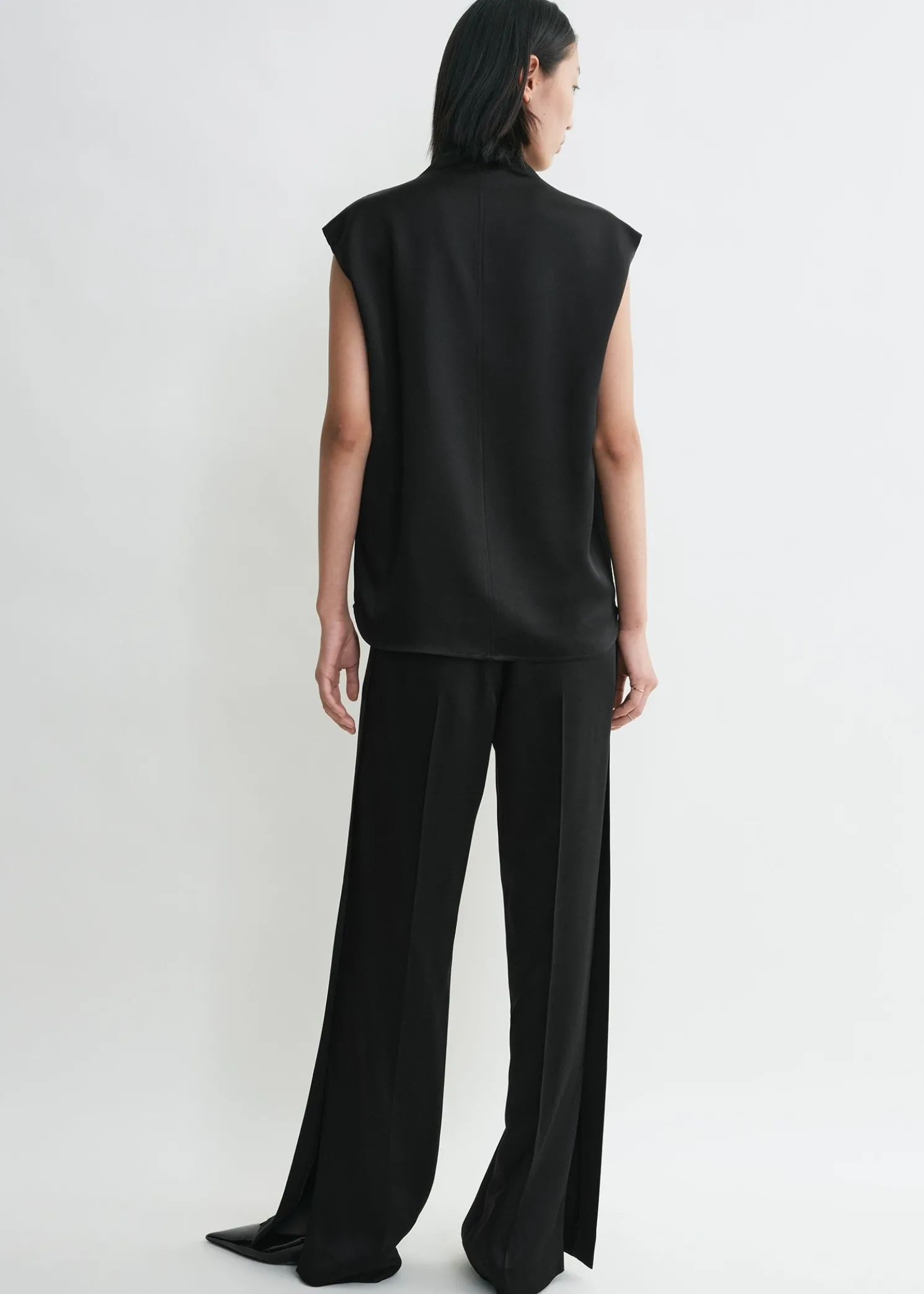 Oversized and long TOTEME slip-on top constructed with a funnel neck that slouches effortlessly over a loose-fitting, sleeveless body. Offset the ample silhouette with a belt.