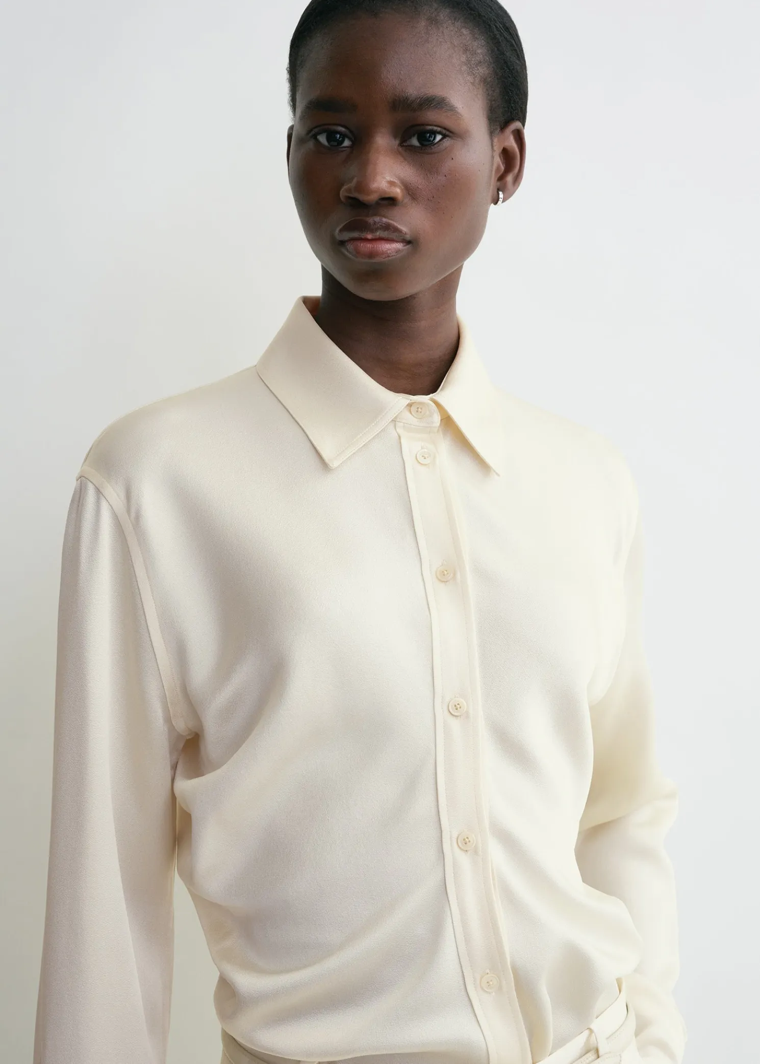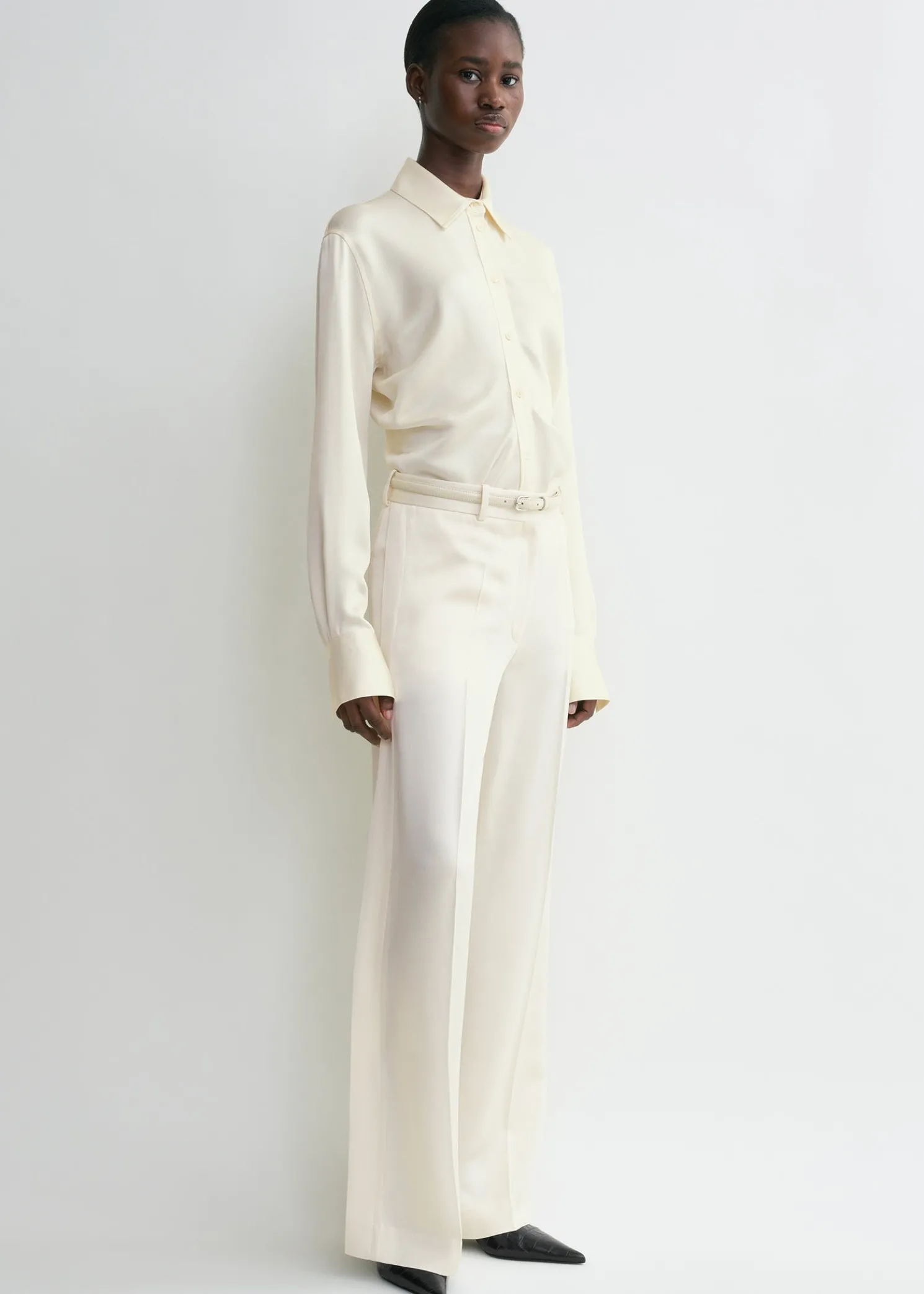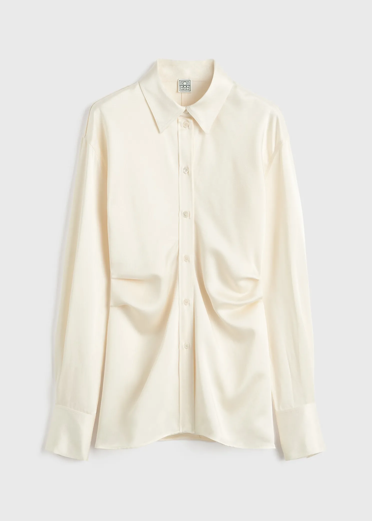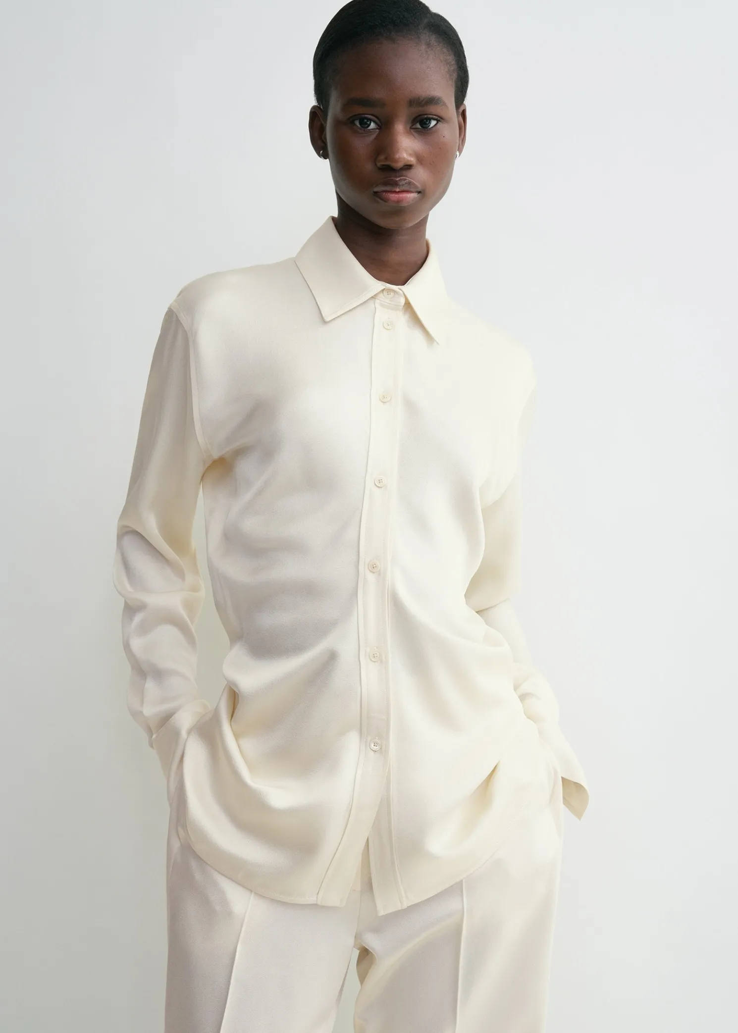 This effortless TOTEME shirt carries a recurring slouch-waist theme continued from previous collections. It is made from fluid and softly textured viscose-blend satin and fastens with buttons at the placket and cuffs. Let it slouch over trousers for an after-work outing.
