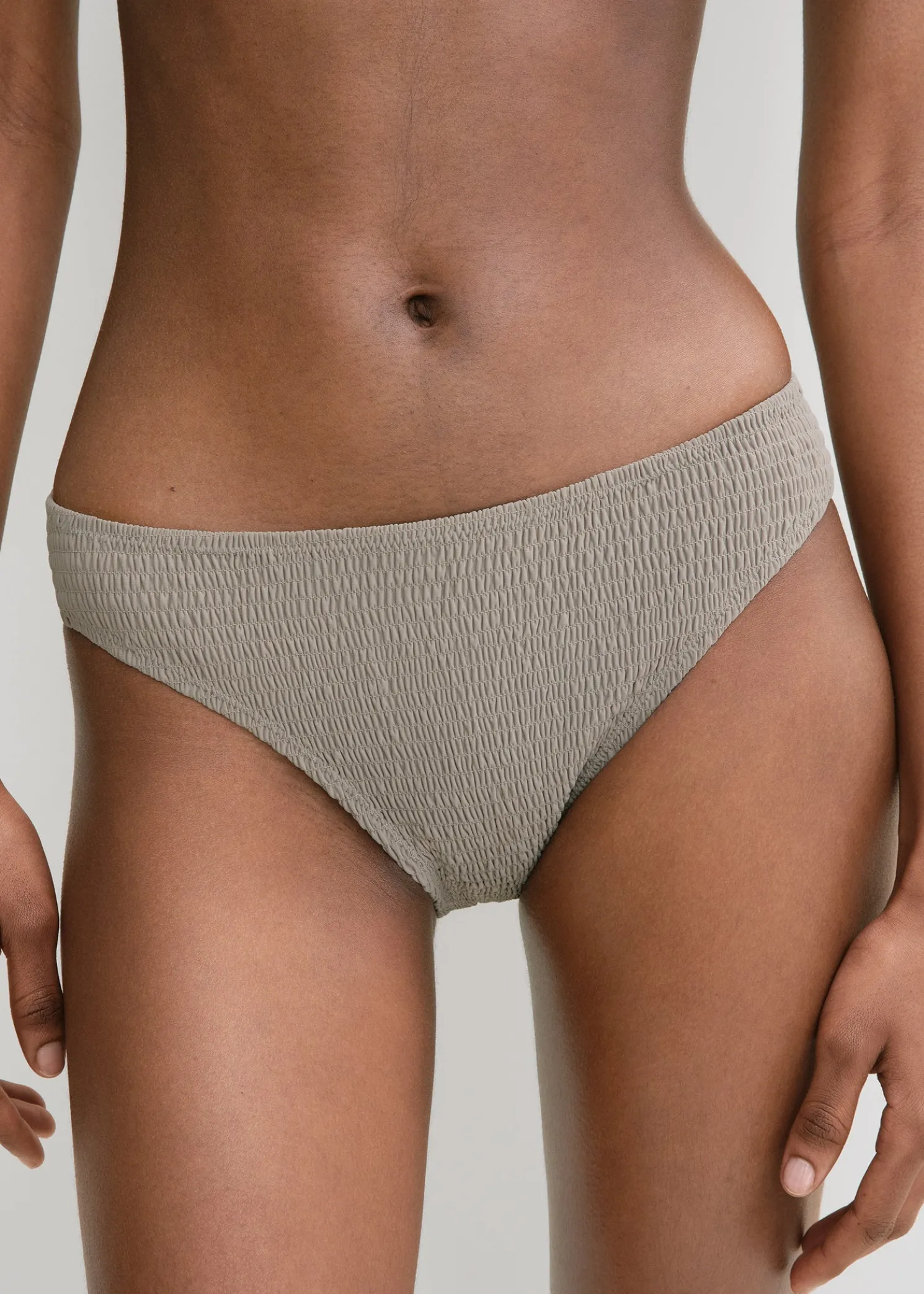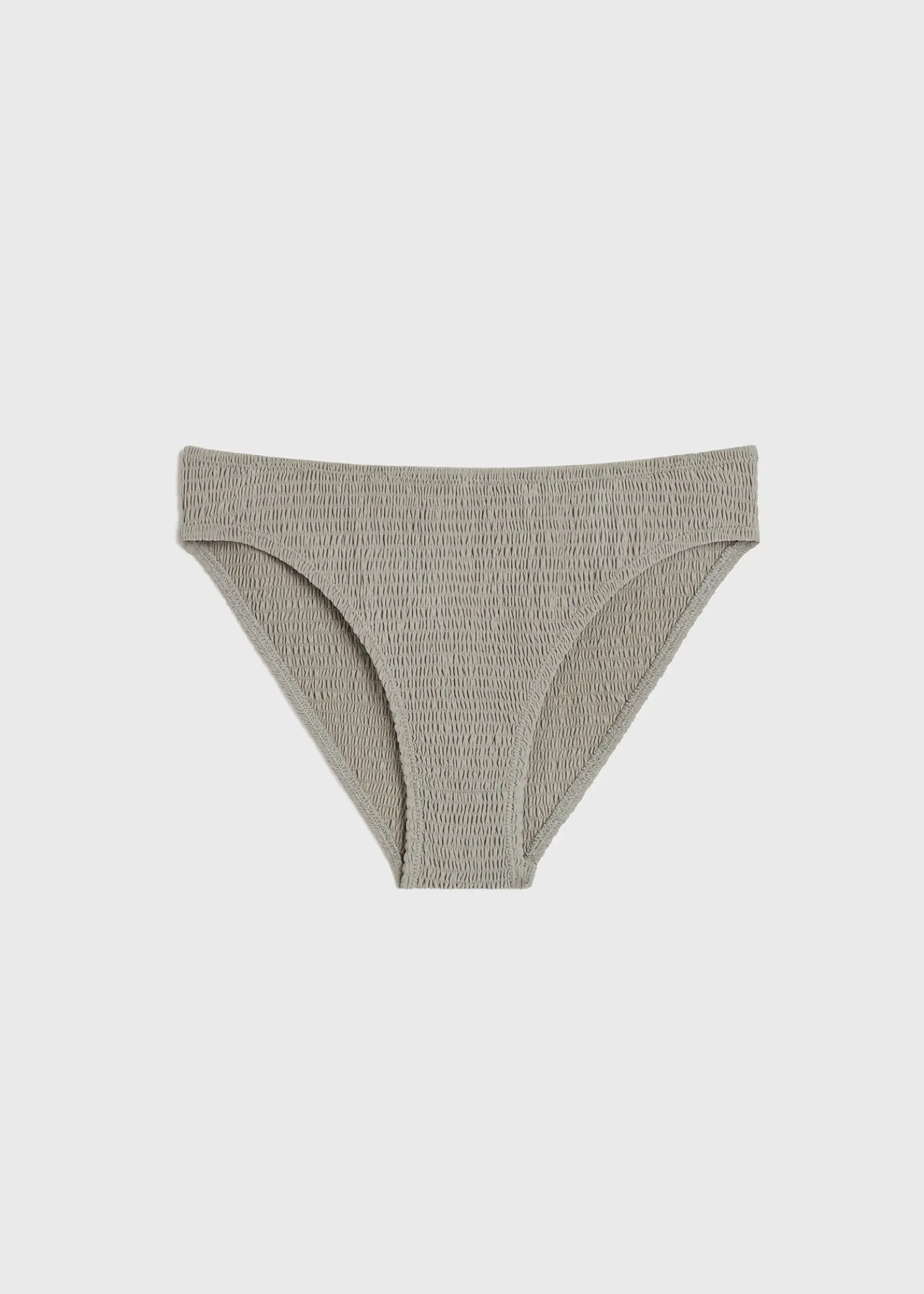 nTOTEME bikini bottoms that are smocked for artisanal texture. They are designed with a low-to-mid waistline and high legs for an alluring effect. Wear them as a set with the matching top.