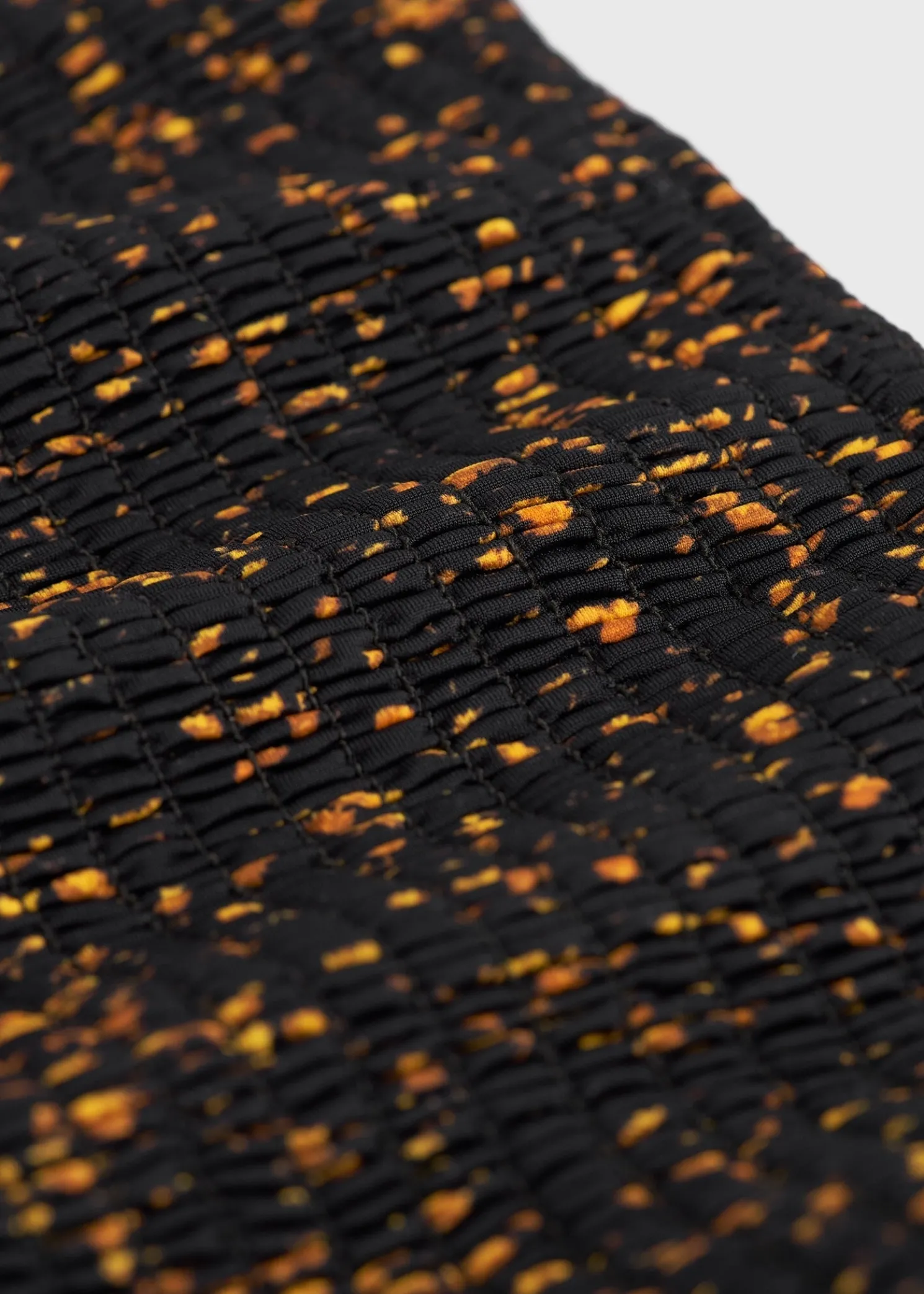 TOTEME bikini bottoms made from smocked jersey printed with a new tortoiseshell pattern. They’re blended from recycled polyamide yarns with a touch of elastane for a second-skin fit and are shaped with a sporty silhouette with a low waist and crotch lining. Wear the full bikini for a statement poolside look.