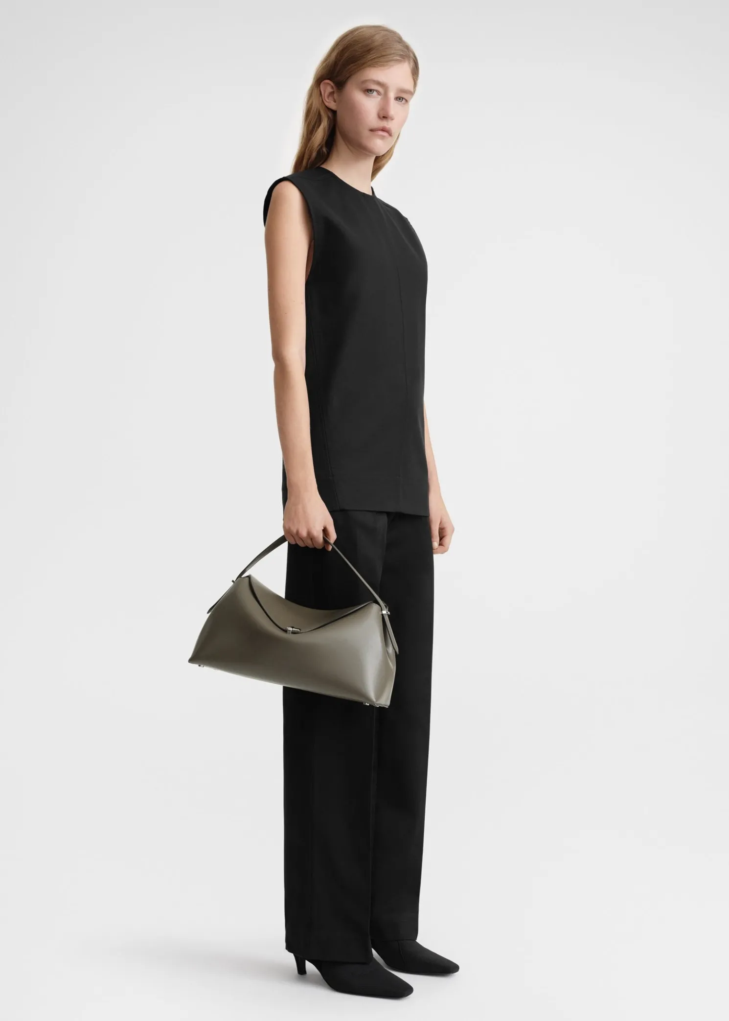 Everyday TOTEME bag sculpted with a curved top that complements the shape of the hand and arm. It’s handcrafted in Italy from smooth leather finished with a silver-tone metal T-Lock and protective feet, then lined in beige microsuede fitted with two leather slip pockets. Carry it from the top handle or from the detachable and adjustable shoulder strap for different styling options.