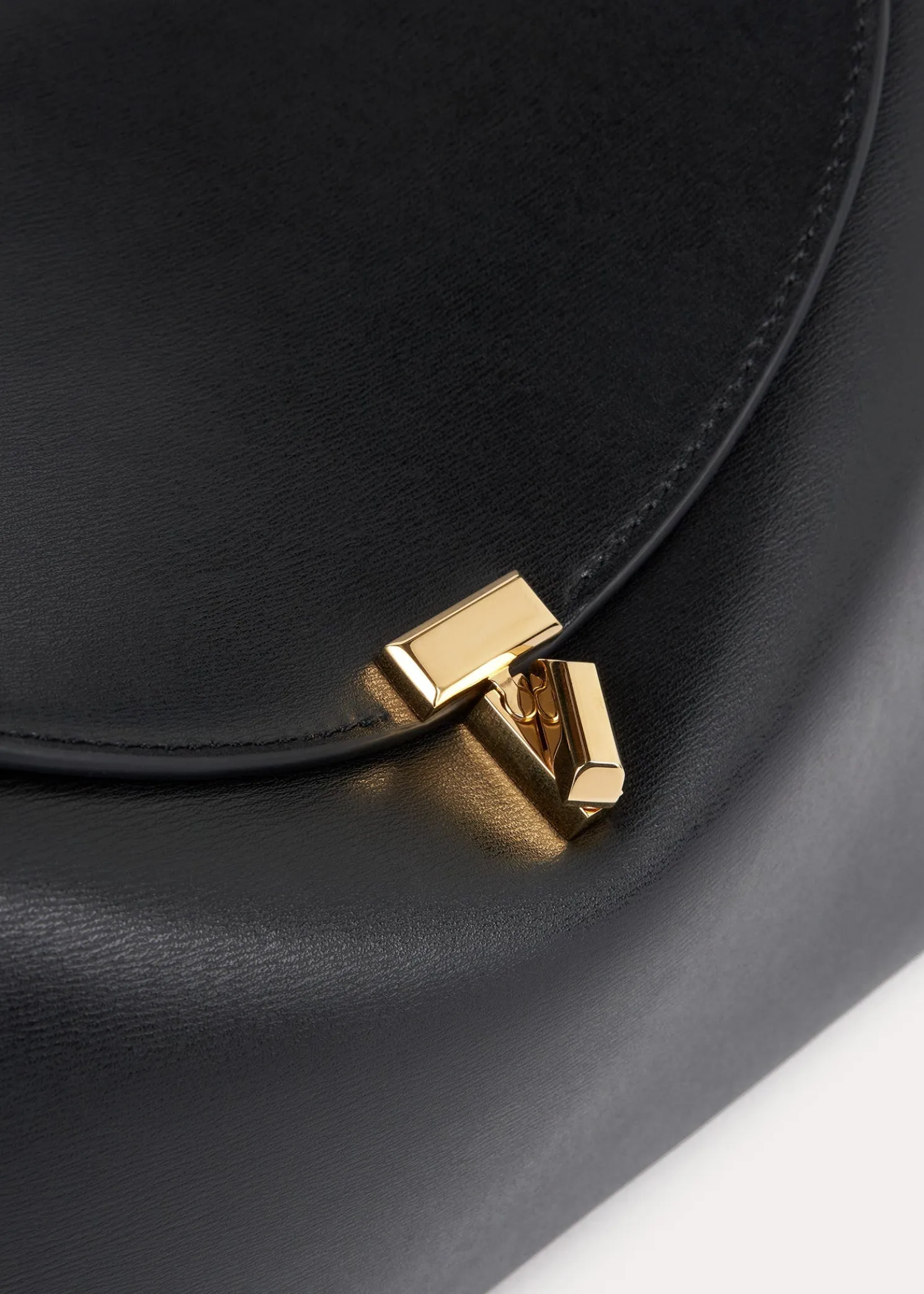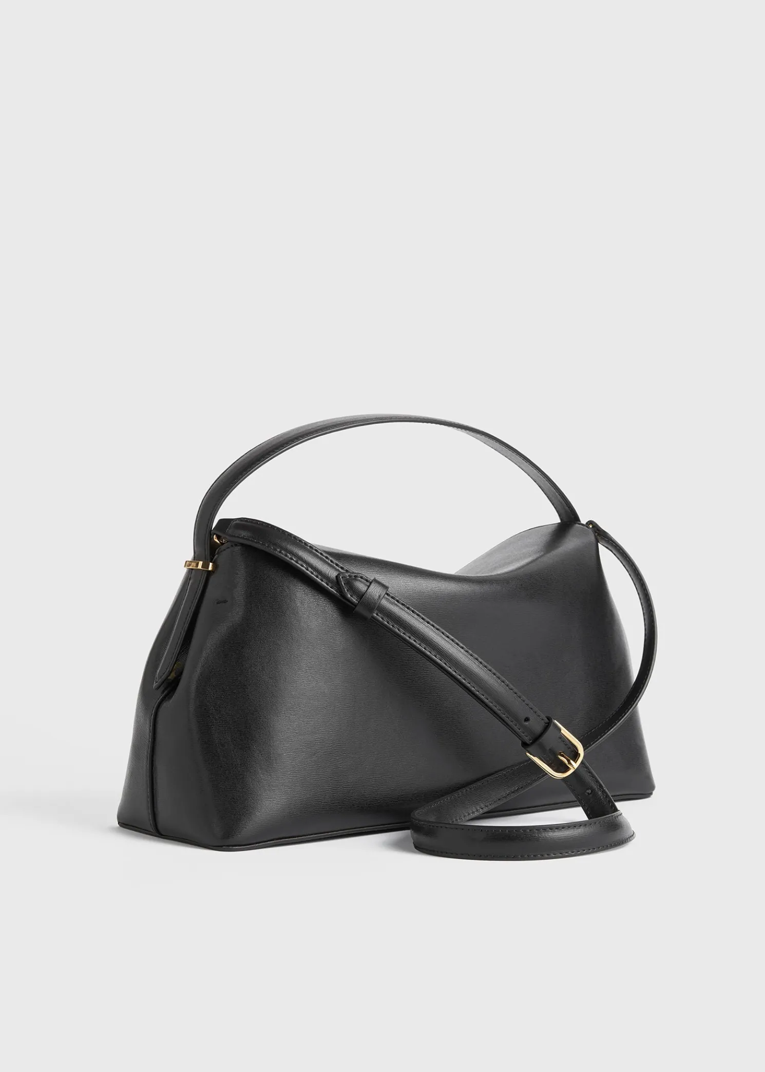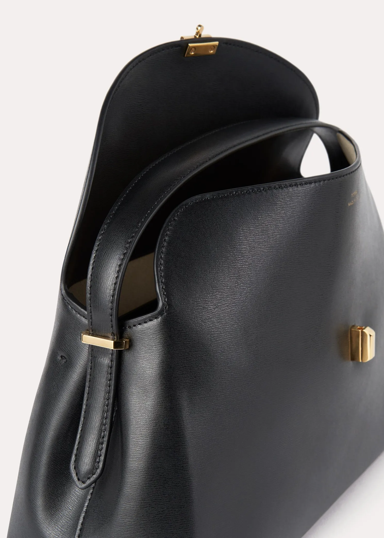 nEveryday TOTEME bag sculpted with a curved topline that complements the shape of the hand and arm. It is handcrafted in Italy from smooth leather finished with a golden metal T-Lock and protective feet, then lined in beige microsuede fitted with two leather slip pockets. Carry it from the top handle or from the detachable and adjustable shoulder strap for different styling options.