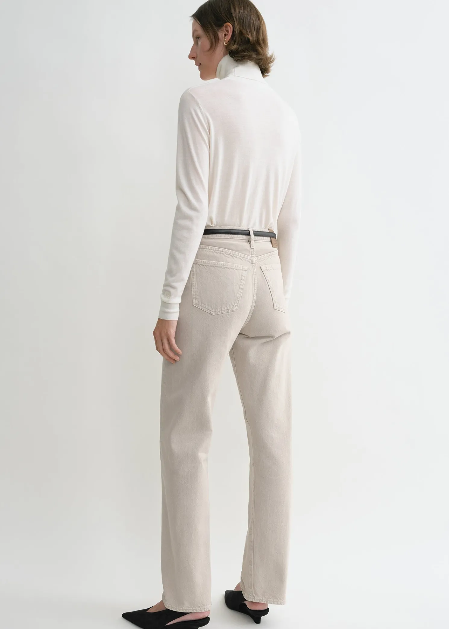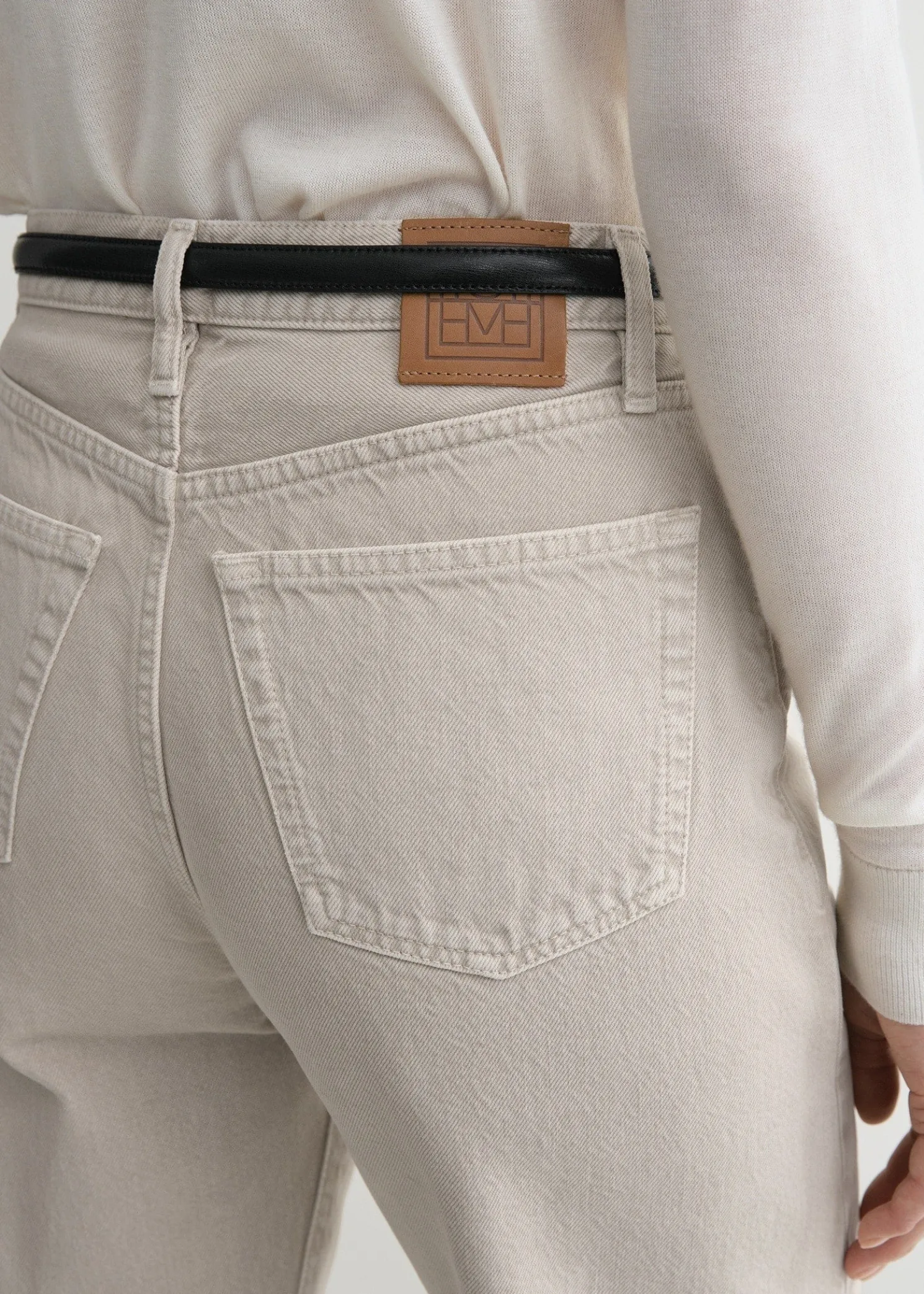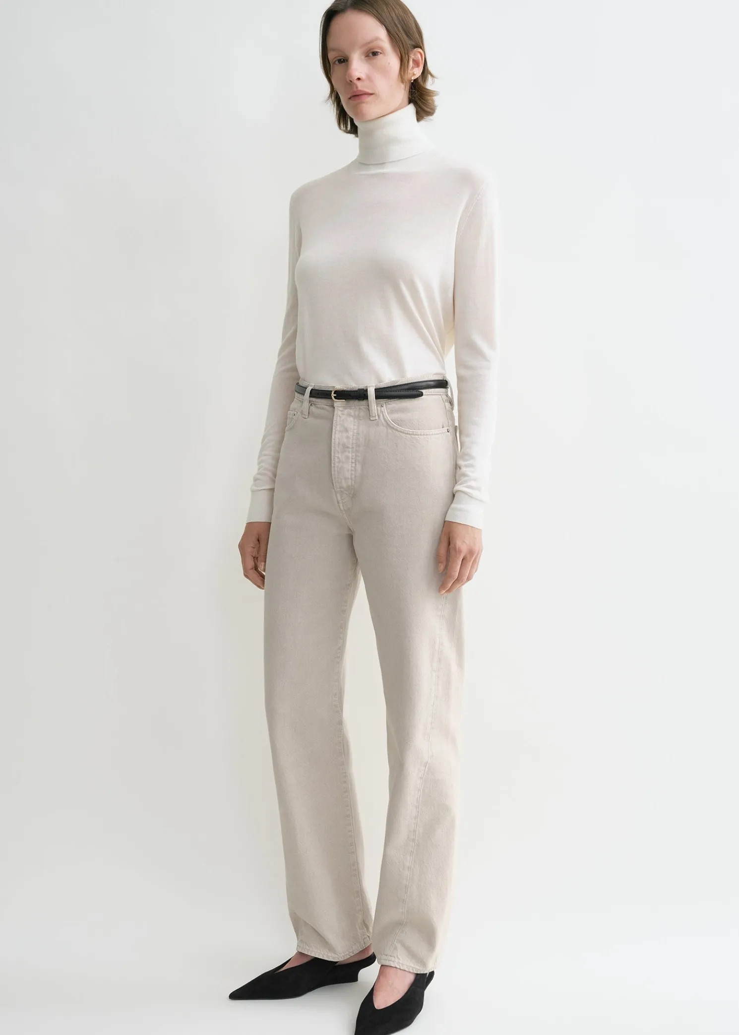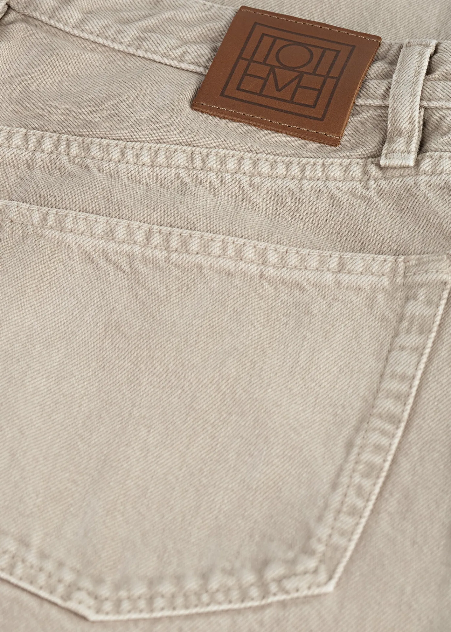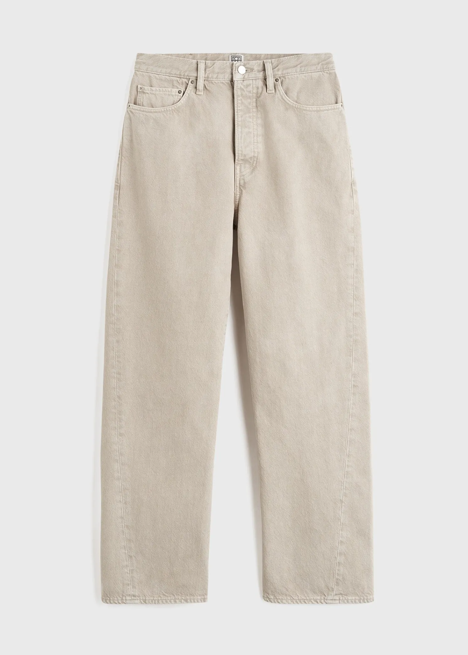 nnBuilding on TOTEME’s Twisted seam denim, these jeans have a low-to-mid waistline and slightly wider and longer straight legs with some space at the thighs. They’re made in Italy from mid-weight and rigid organic-cotton denim that’s finished with five pockets, a leather monogram patch and a button fly. Wear them as intended for a relaxed fit or go down a size for a more fitted look.