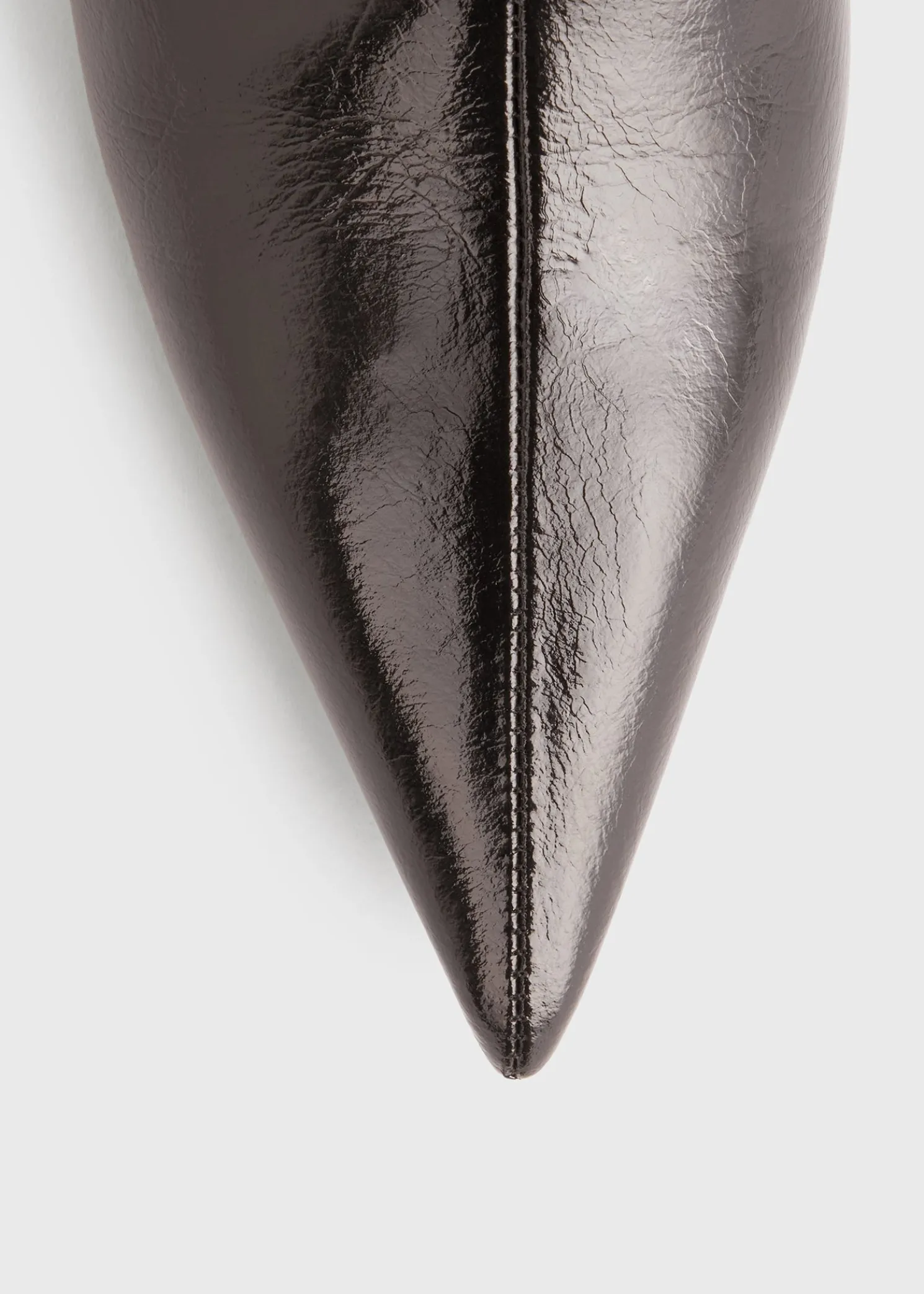 TOTEME wide shaft boots reimagined with a more pointed toe and a 55mm half-wedge heel channeling a modern and elegant mood. Made in Italy from Nappa leather, they have a wide shaft suited for different leg shapes and are lined in smooth leather. Wear them over slim jeans.