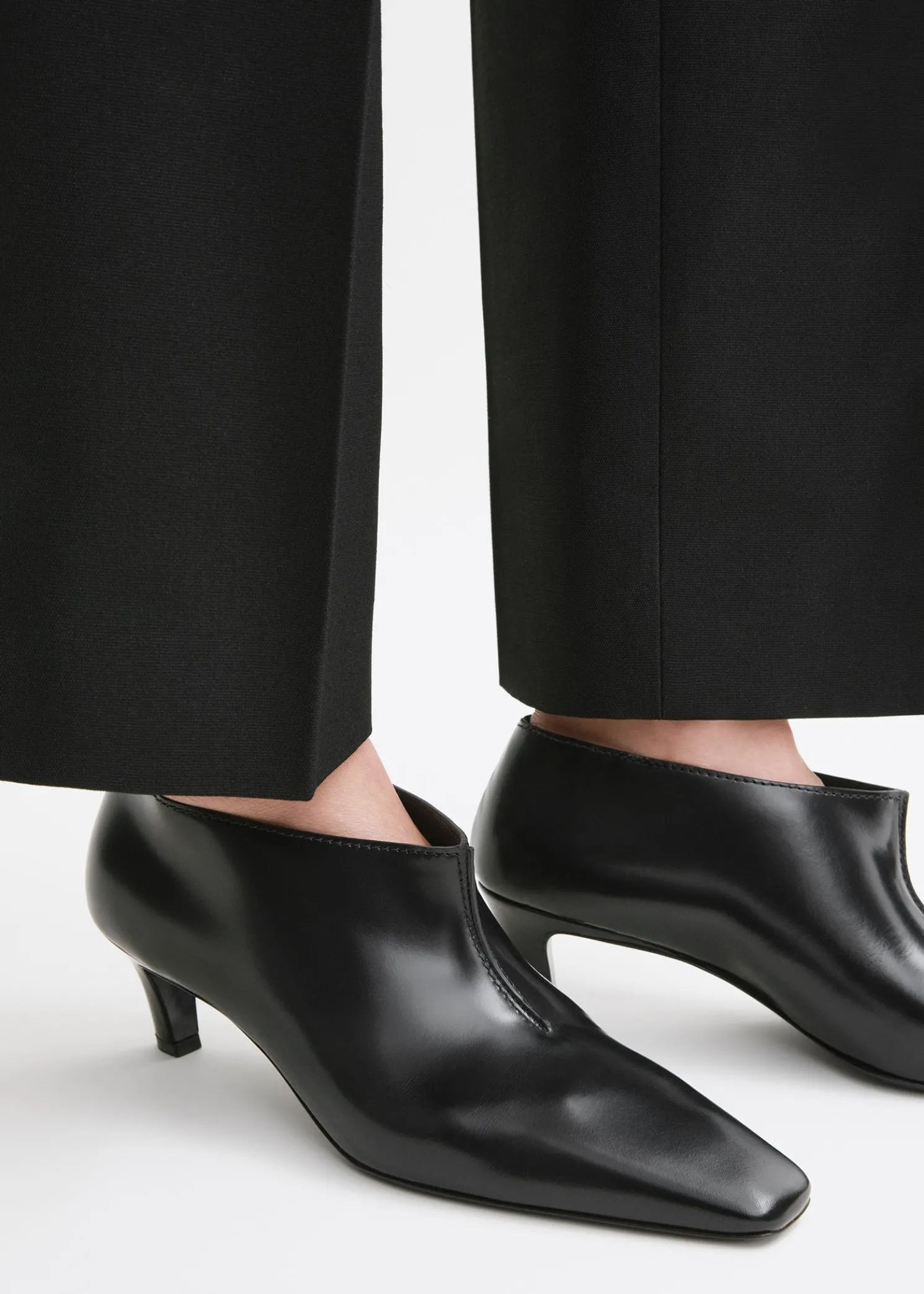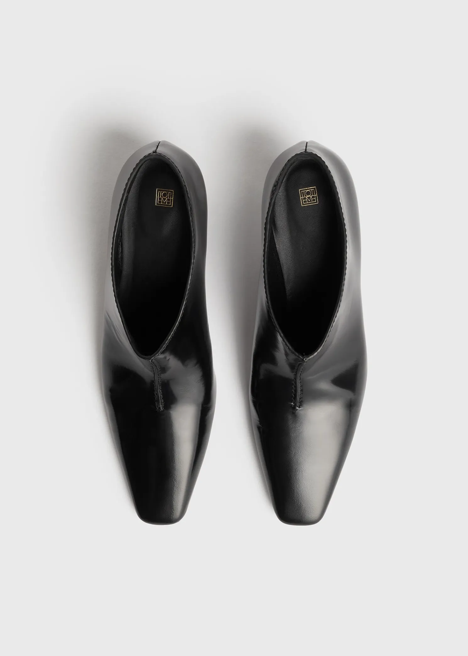 TOTEME shoes named after their statement silhouette, which is led by a wide shaft that sits just below the ankle. They are crafted in Italy from brushed abrasivato leather with a squared point toe and a covered 55mm heel, then are lined in soft leather. Keep them in focus by wearing them with midi dresses and cropped trousers.
