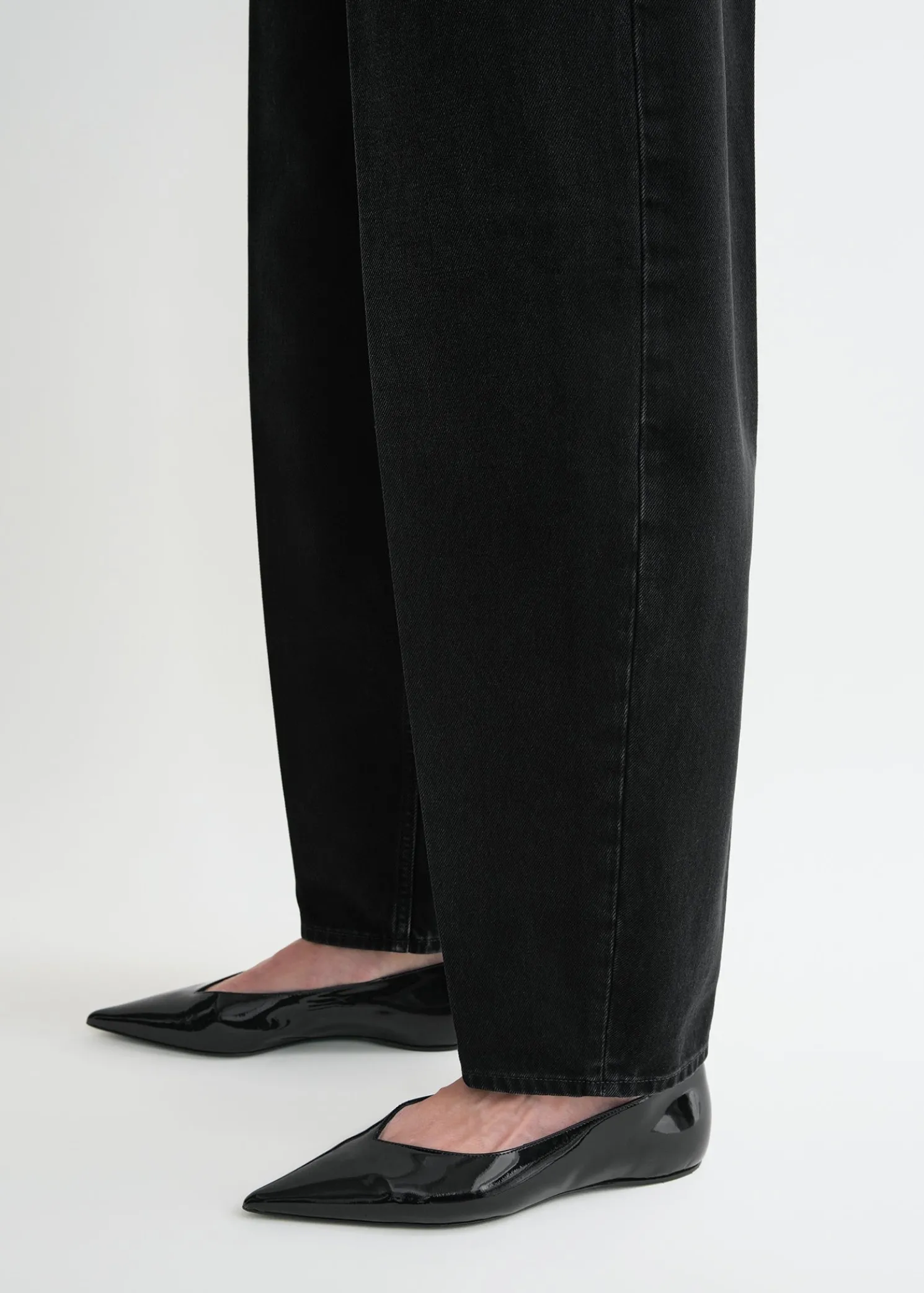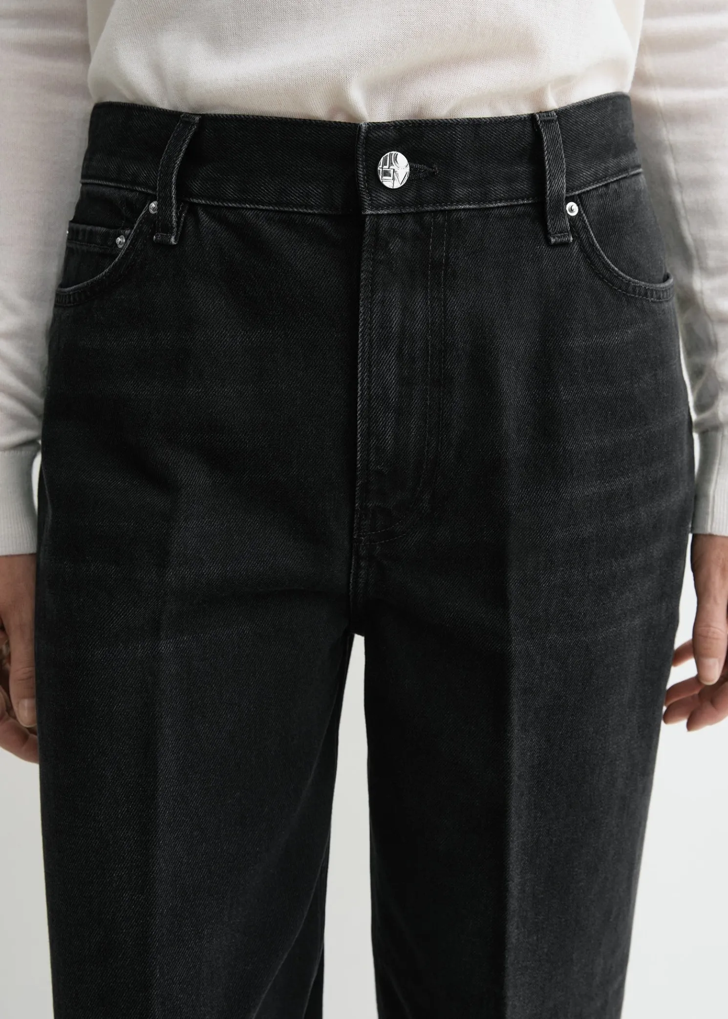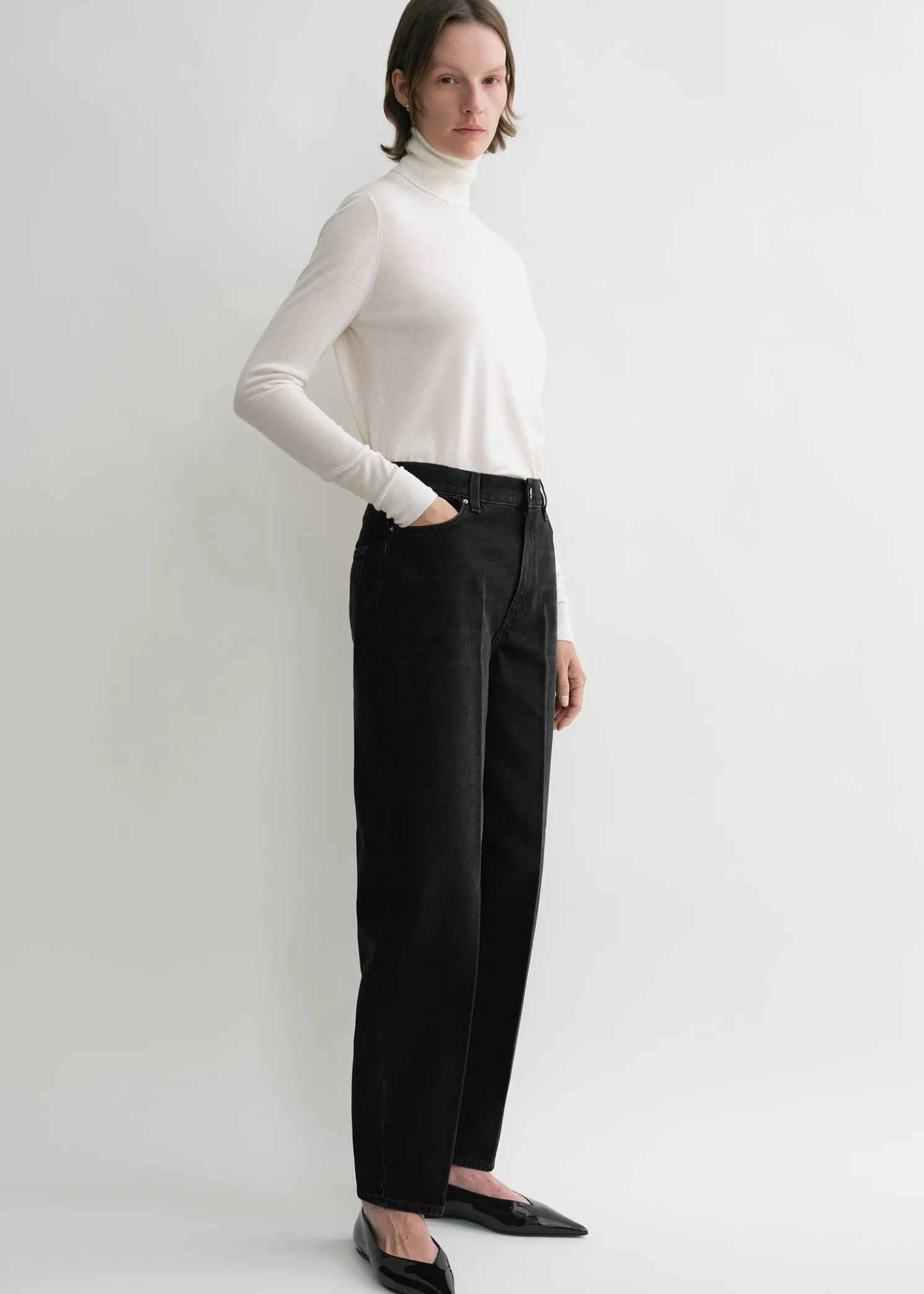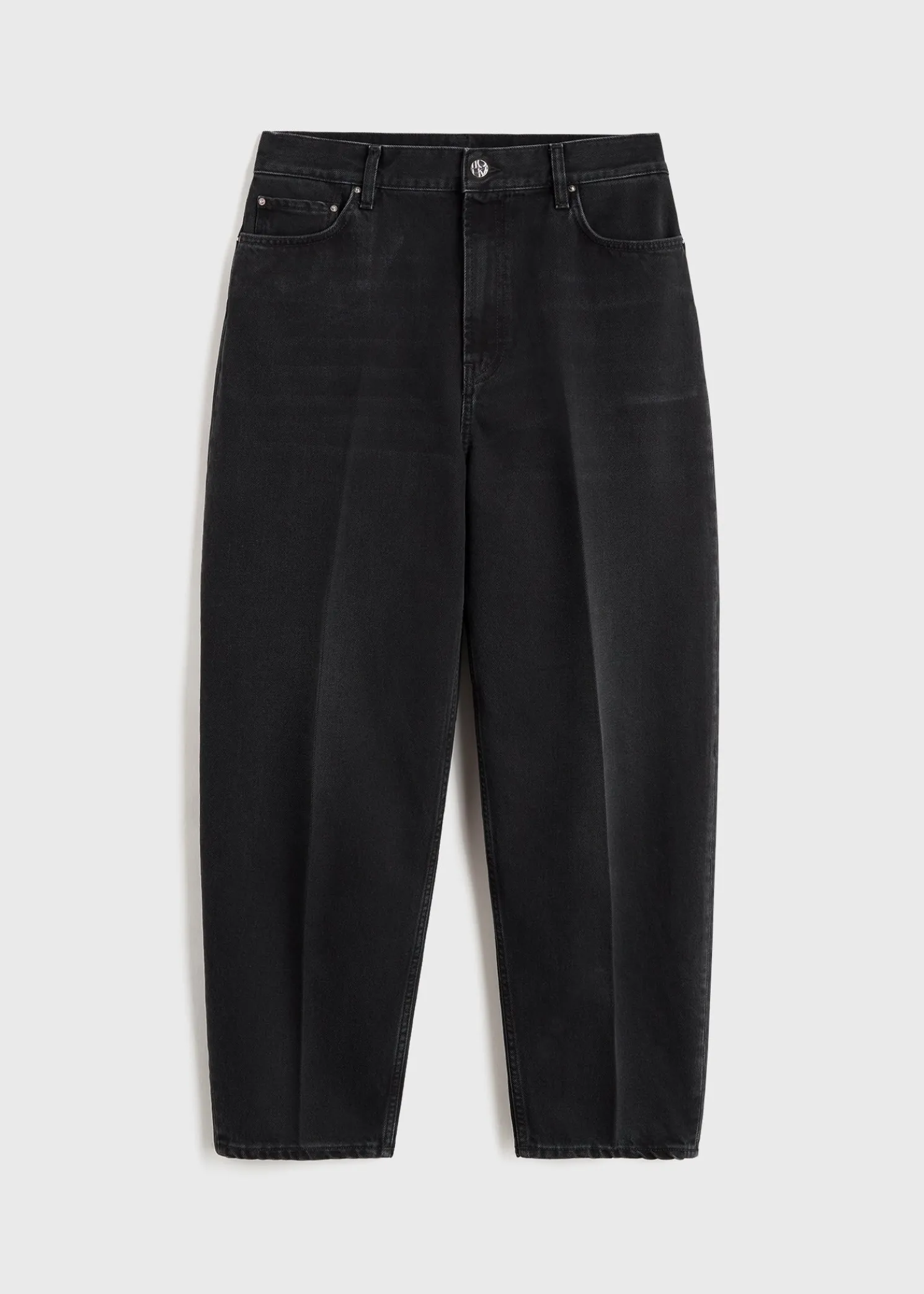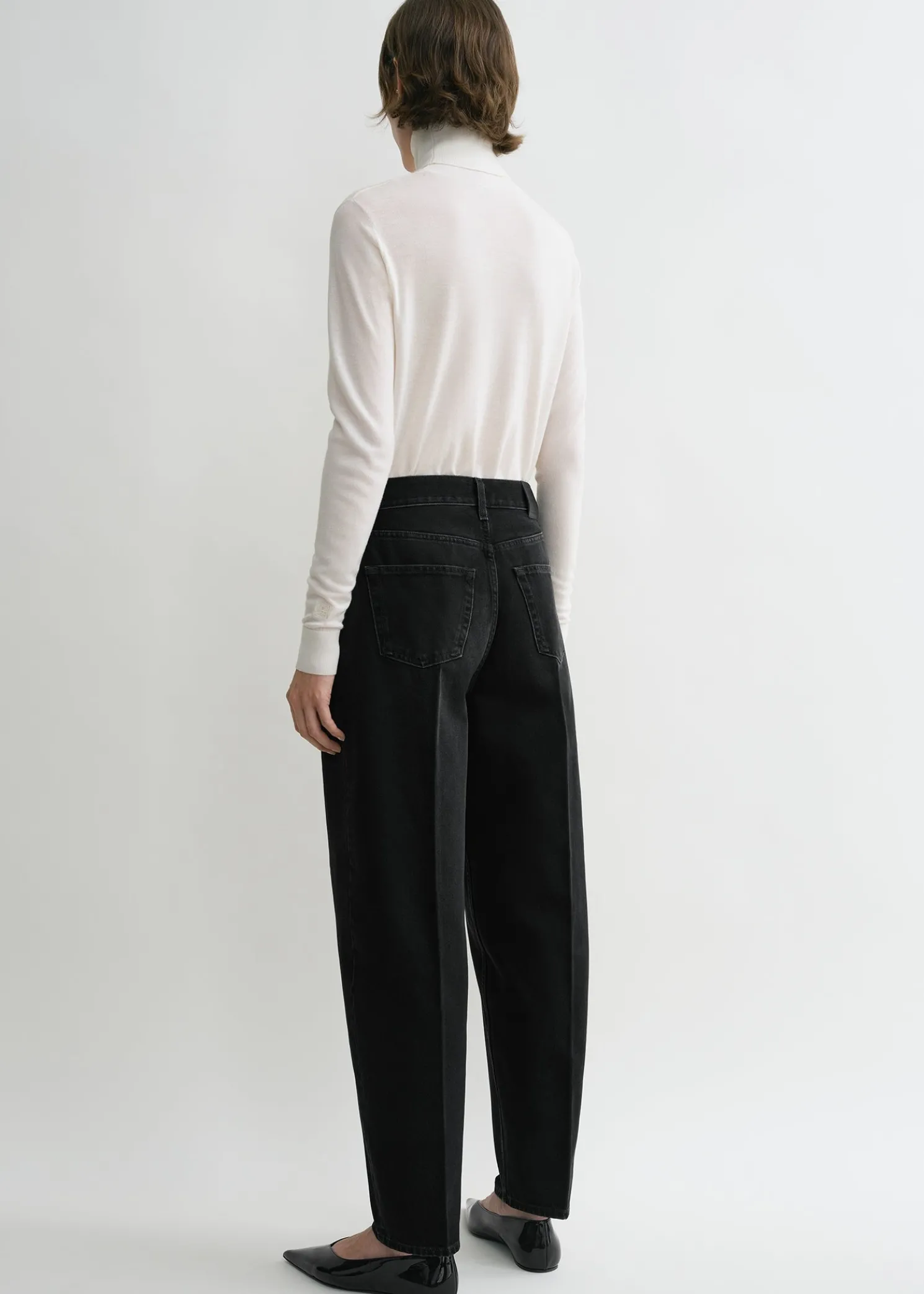 New jeans with wide, curved legs inspired by TOTEME’s statement barrel silhouette, which tapers gently towards the ankles. They’re made in Italy from organic-cotton denim that’s washed for a faded look and fasten at the low-to-mid waist with a concealed zipper. Balance the ample shape with fitted tops and sweaters.