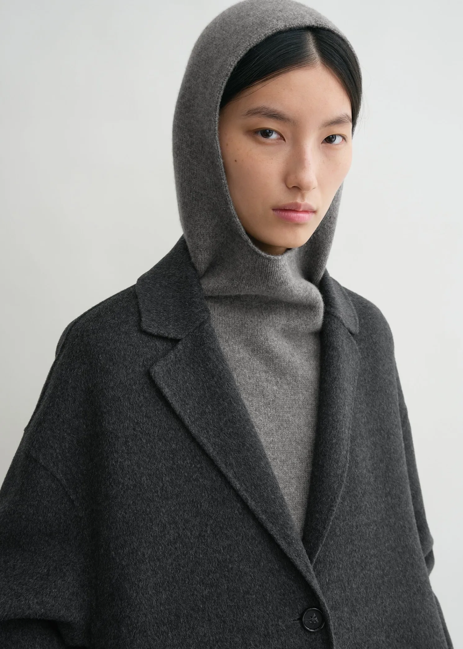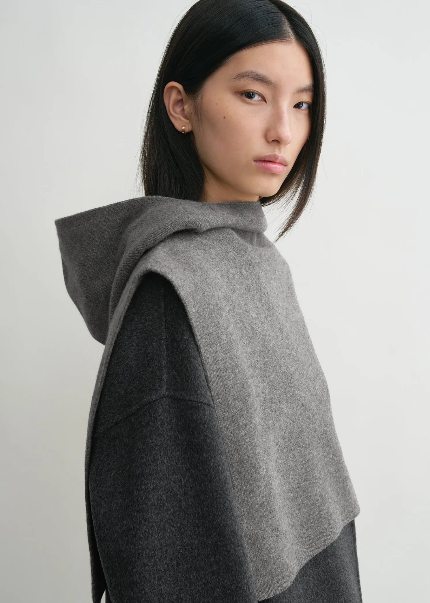 Hooded TOTEME bib to stay warm in style. It is knitted from a mid-weight blend of wool and cashmere that feels soft and cozy against the body. Wear it in cold weather with tonal accessories.